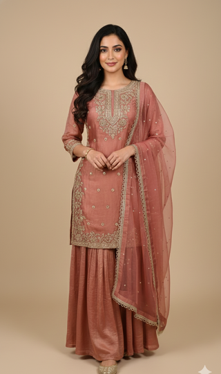 Champagne Gold Zari & Sequin Sharara Suit Set