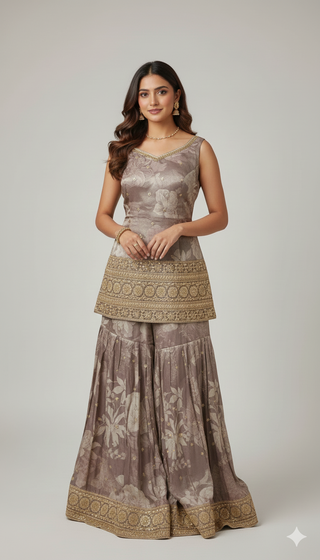 Royal Mauve Zari & Sequin Sharara Suit Set