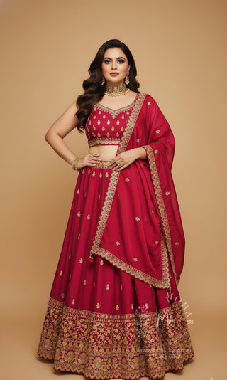Embroidered Lehenga Choli with Gold Border - Maroon & Navy Blue