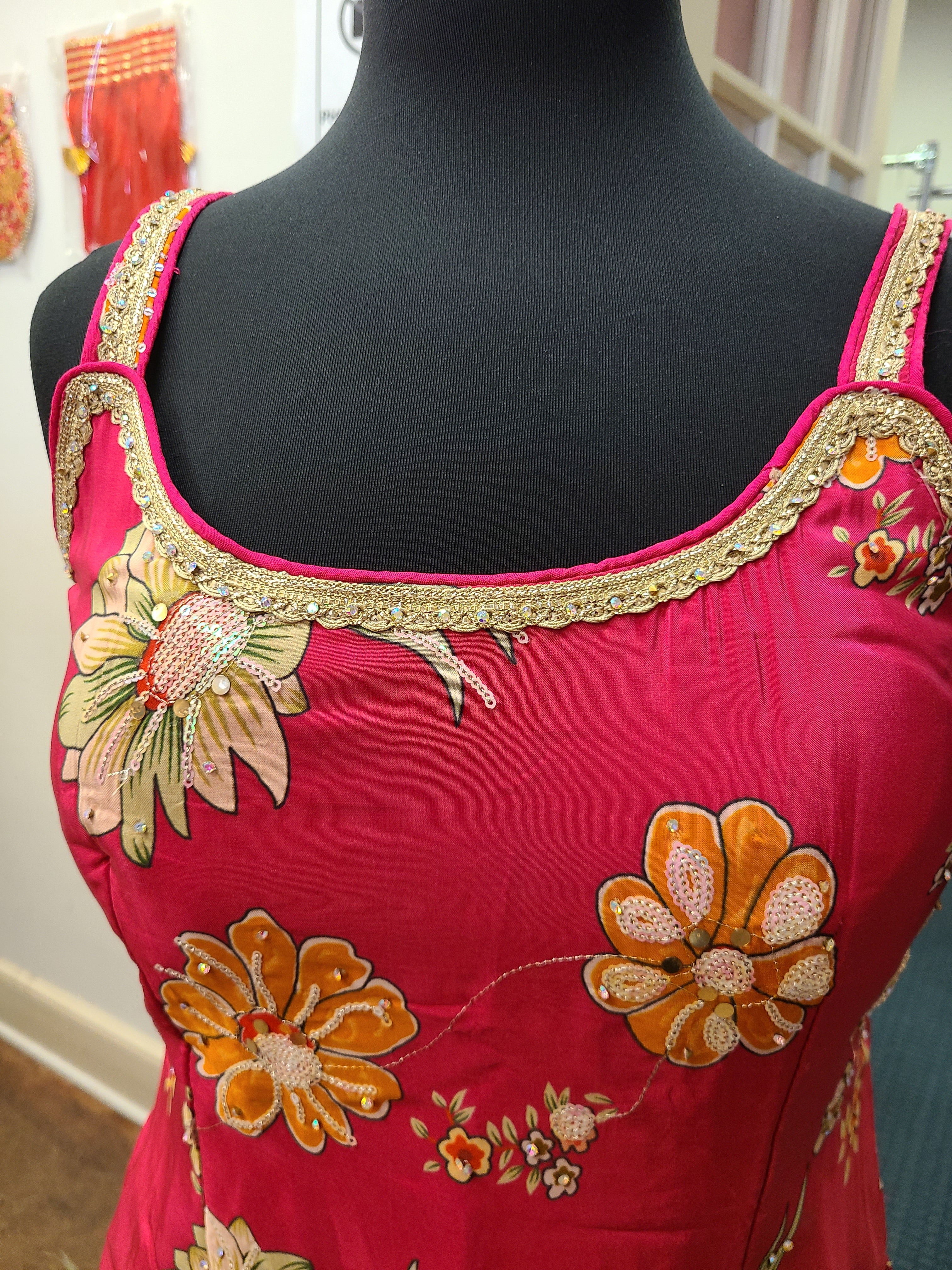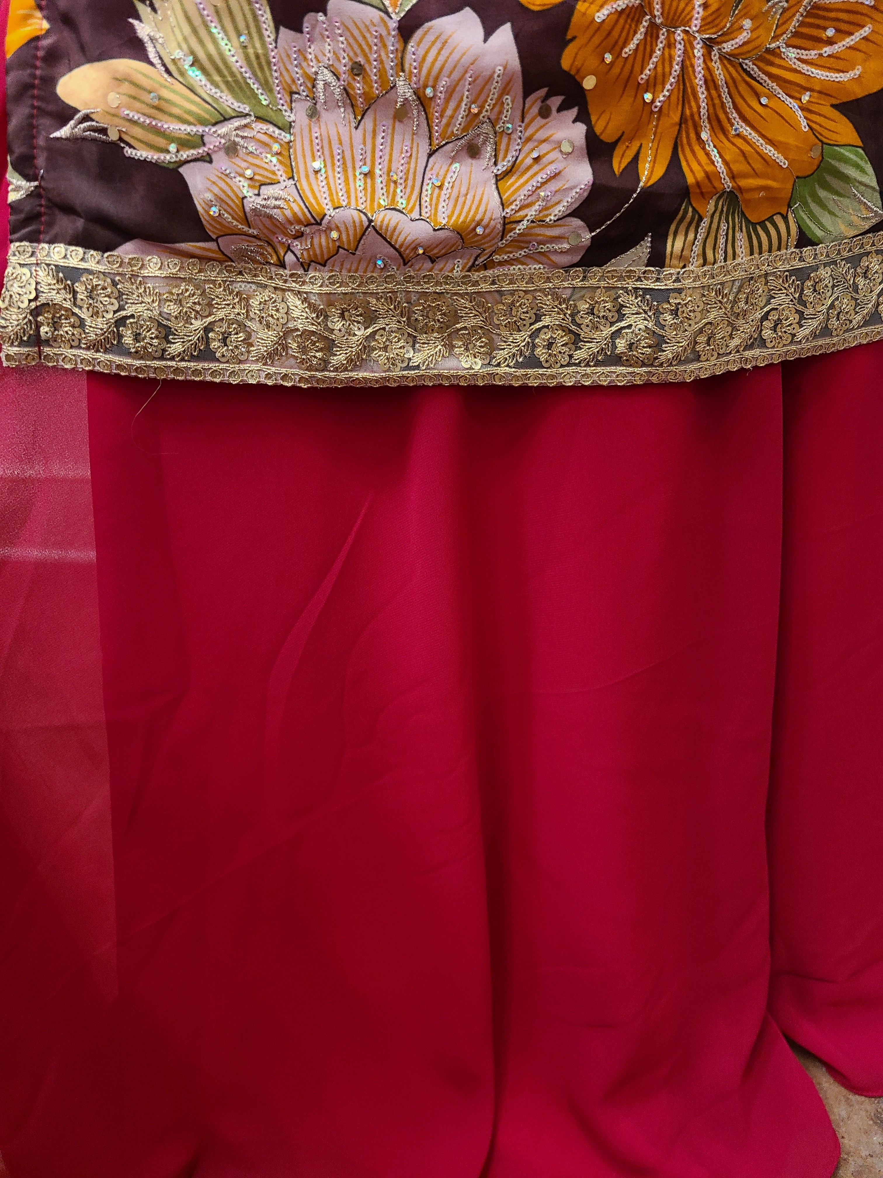 - Kurta: Crafted from lightweight Chiffon with a vibrant floral digital print for a graceful drape.