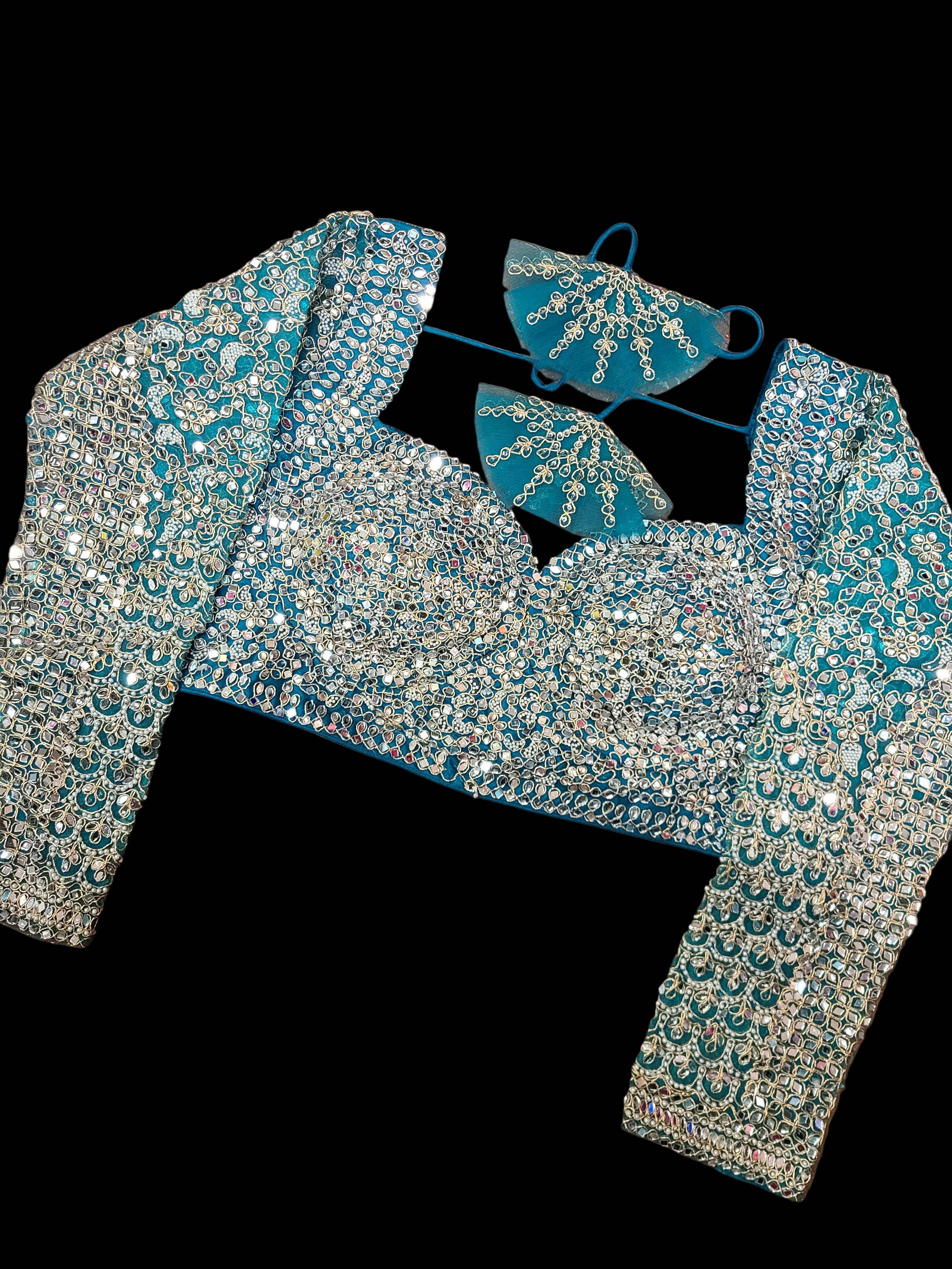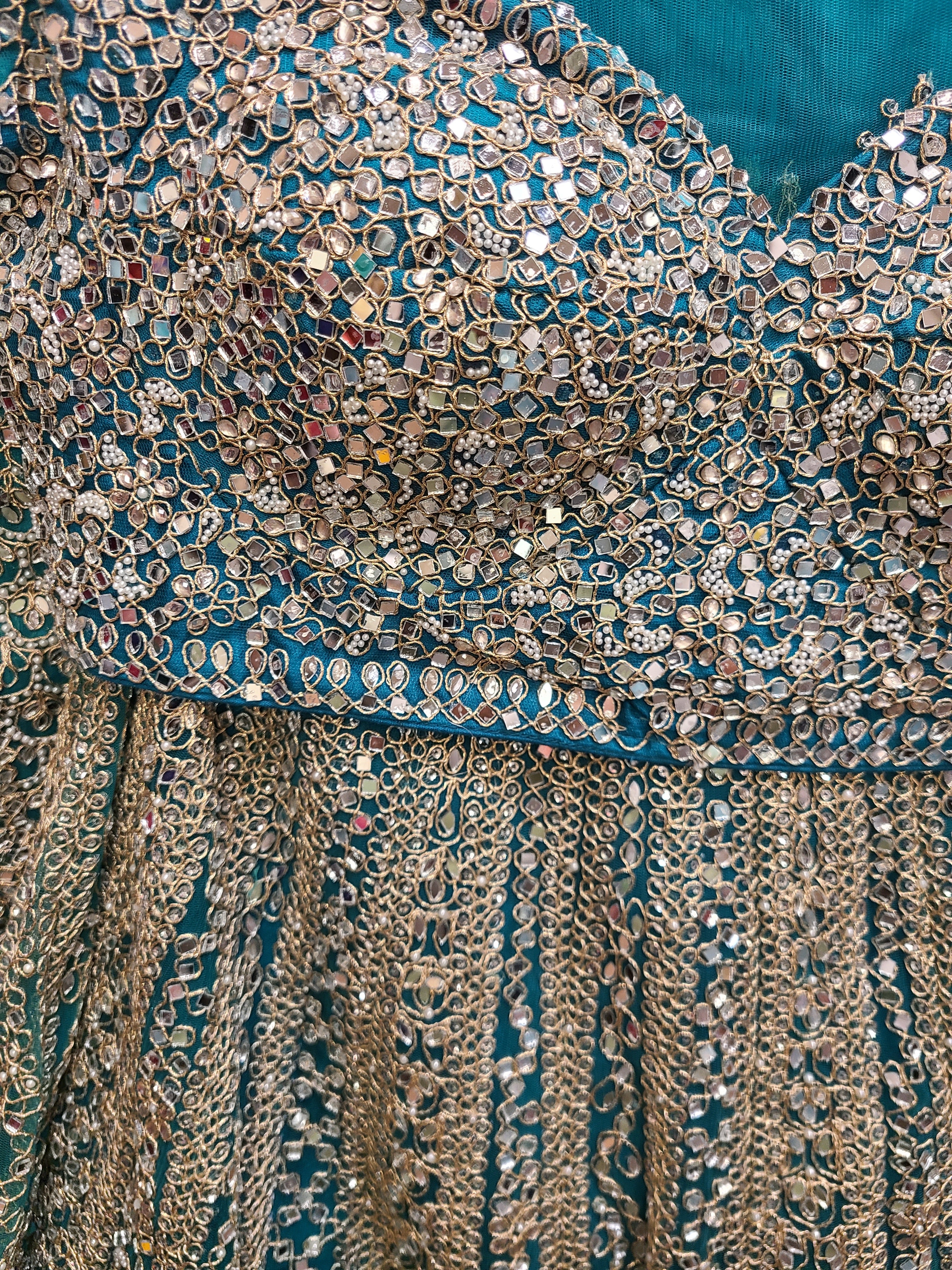 Turquoise Mirror work Lehenga