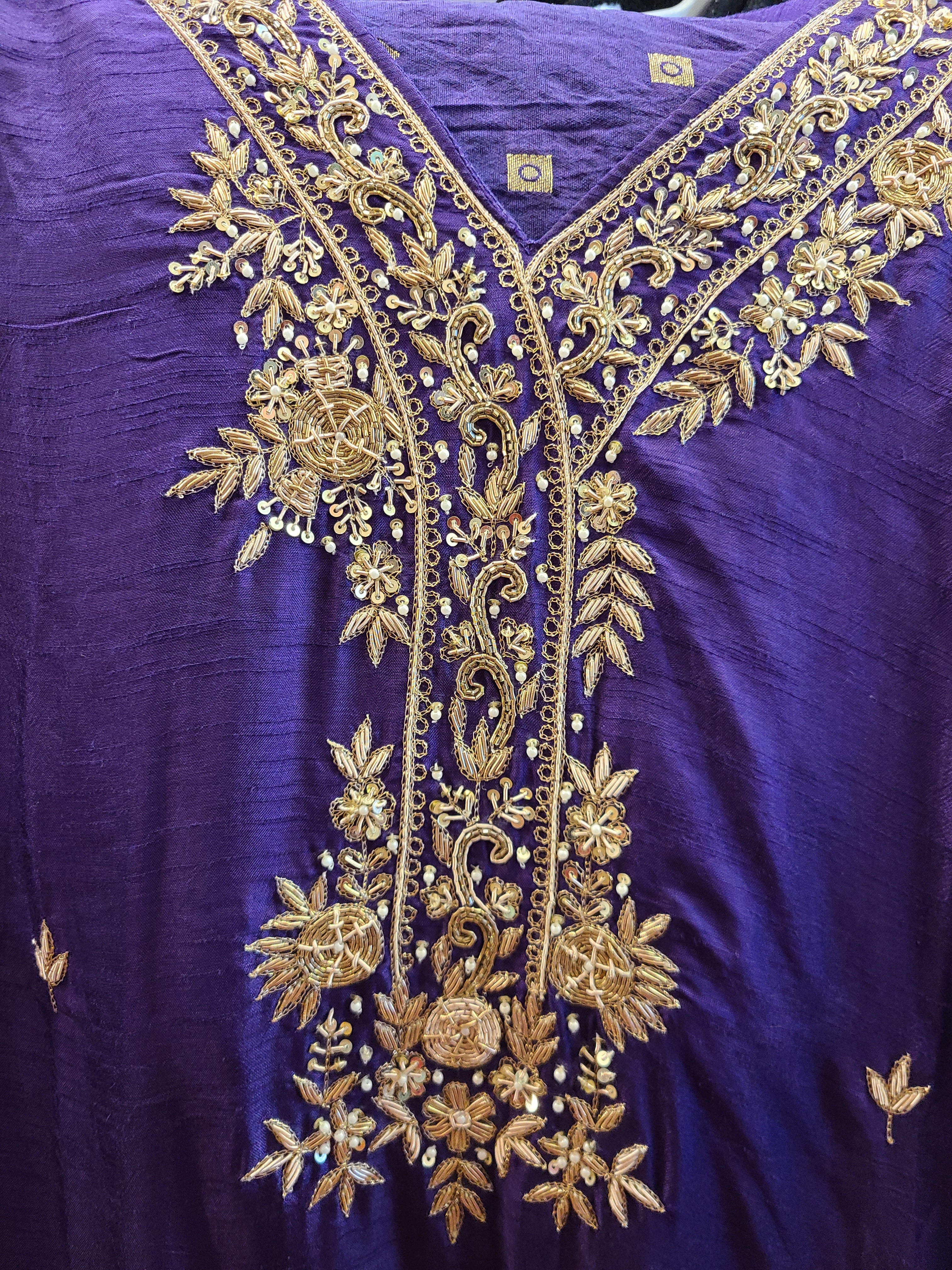 - Embellishment: Hand-embroidered silver threadwork and sequin detailing