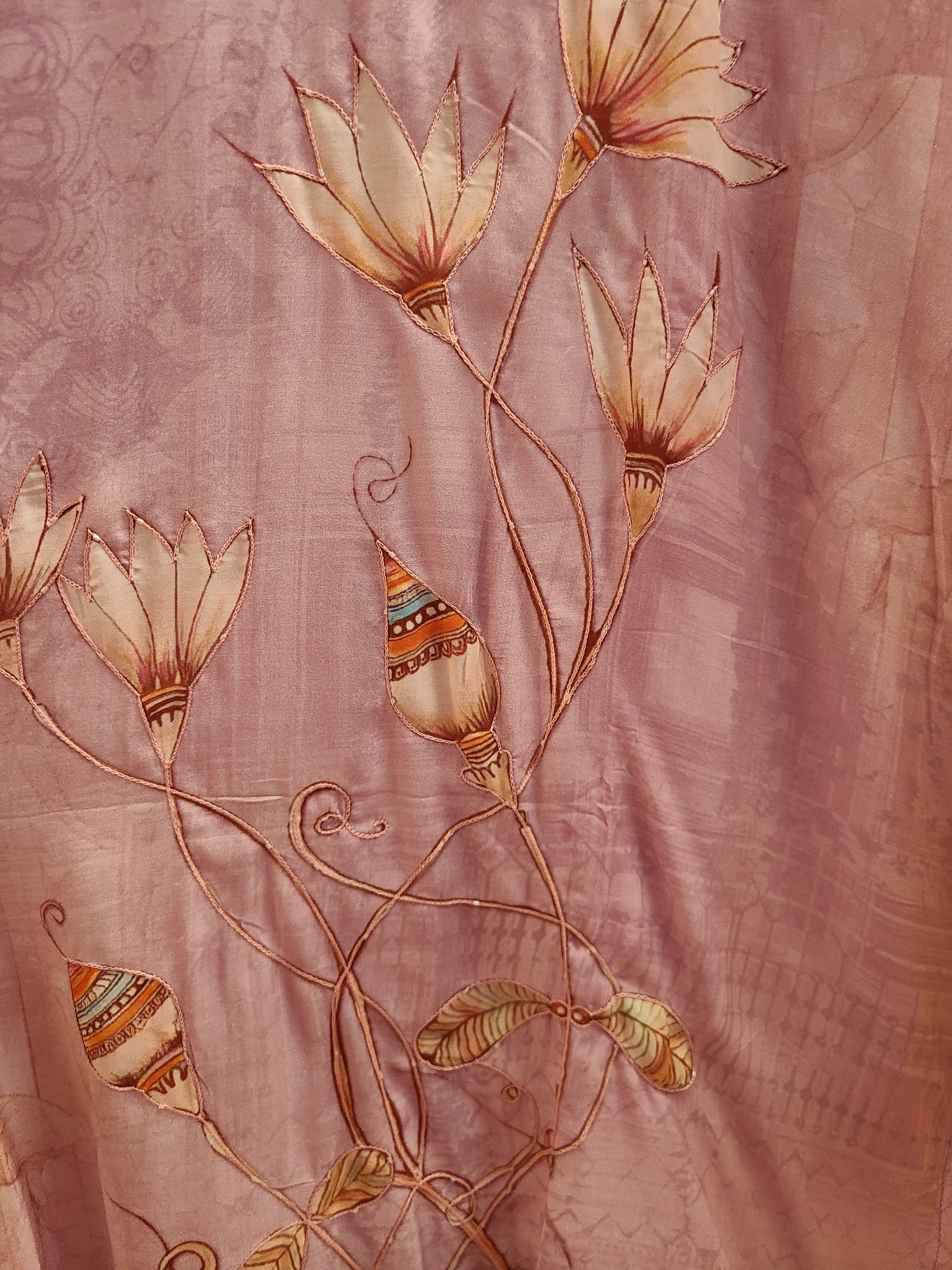 - Embellishment: Hand-embroidered floral motifs in tonal shades