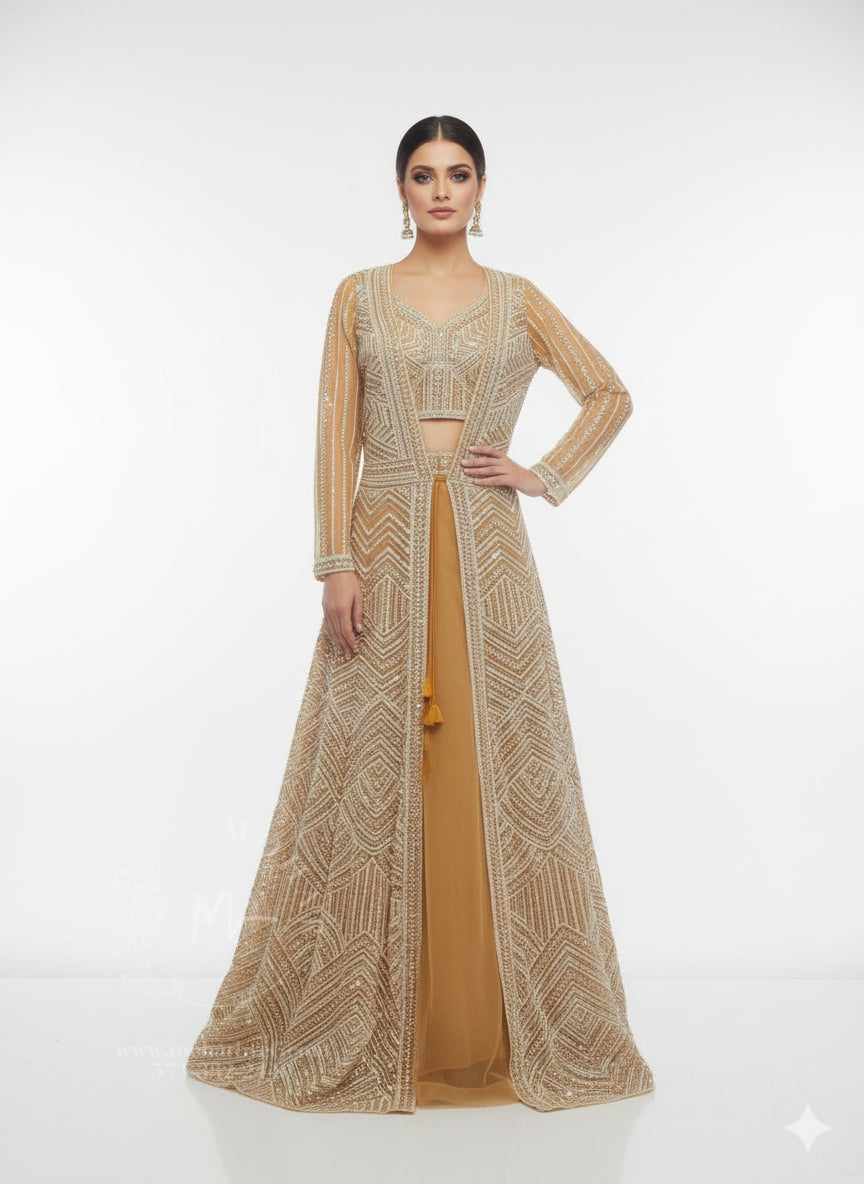 Beige-Mustard-Gold Floor-Length Gown