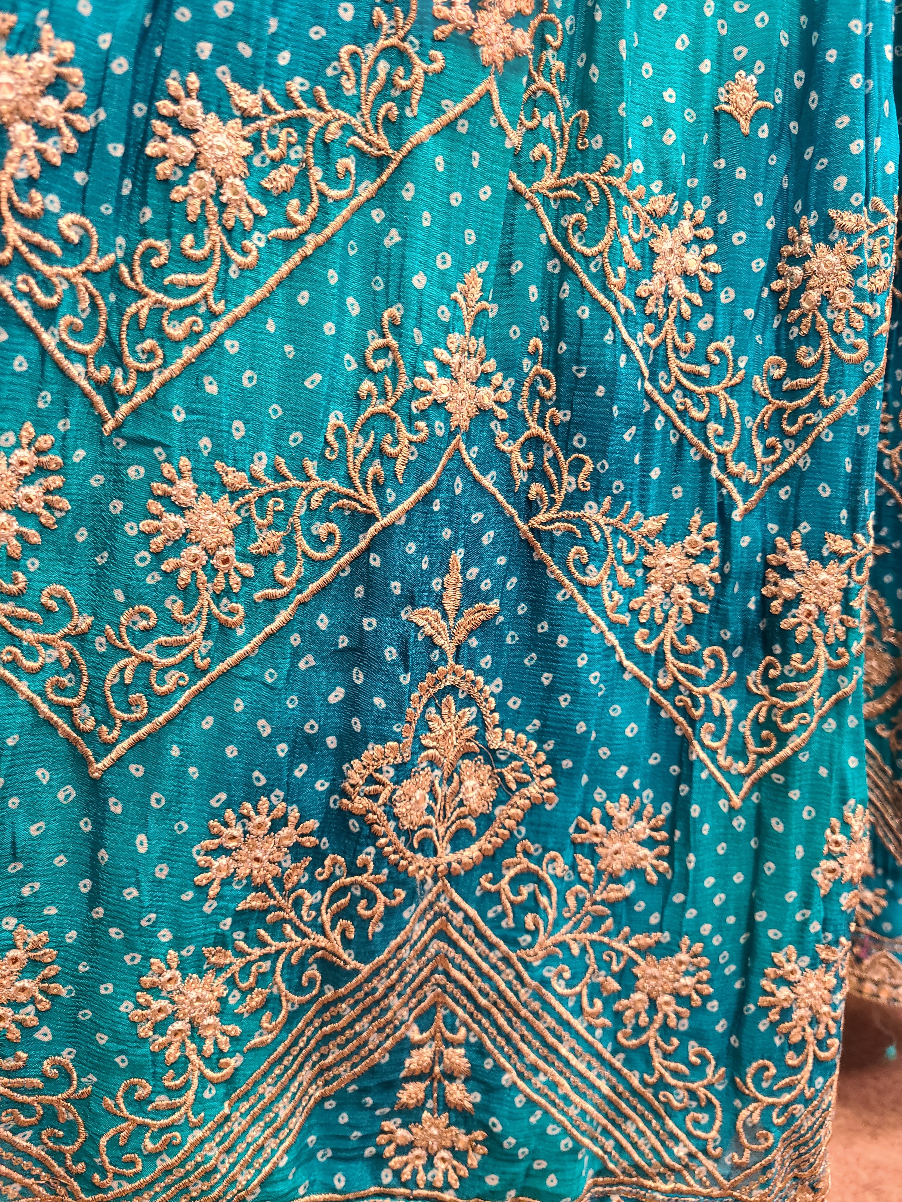 Turquoise Bandhani Embroidered Anarkali Gown