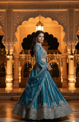 Mint Green Pastel Floral Embroidered Lehenga Set