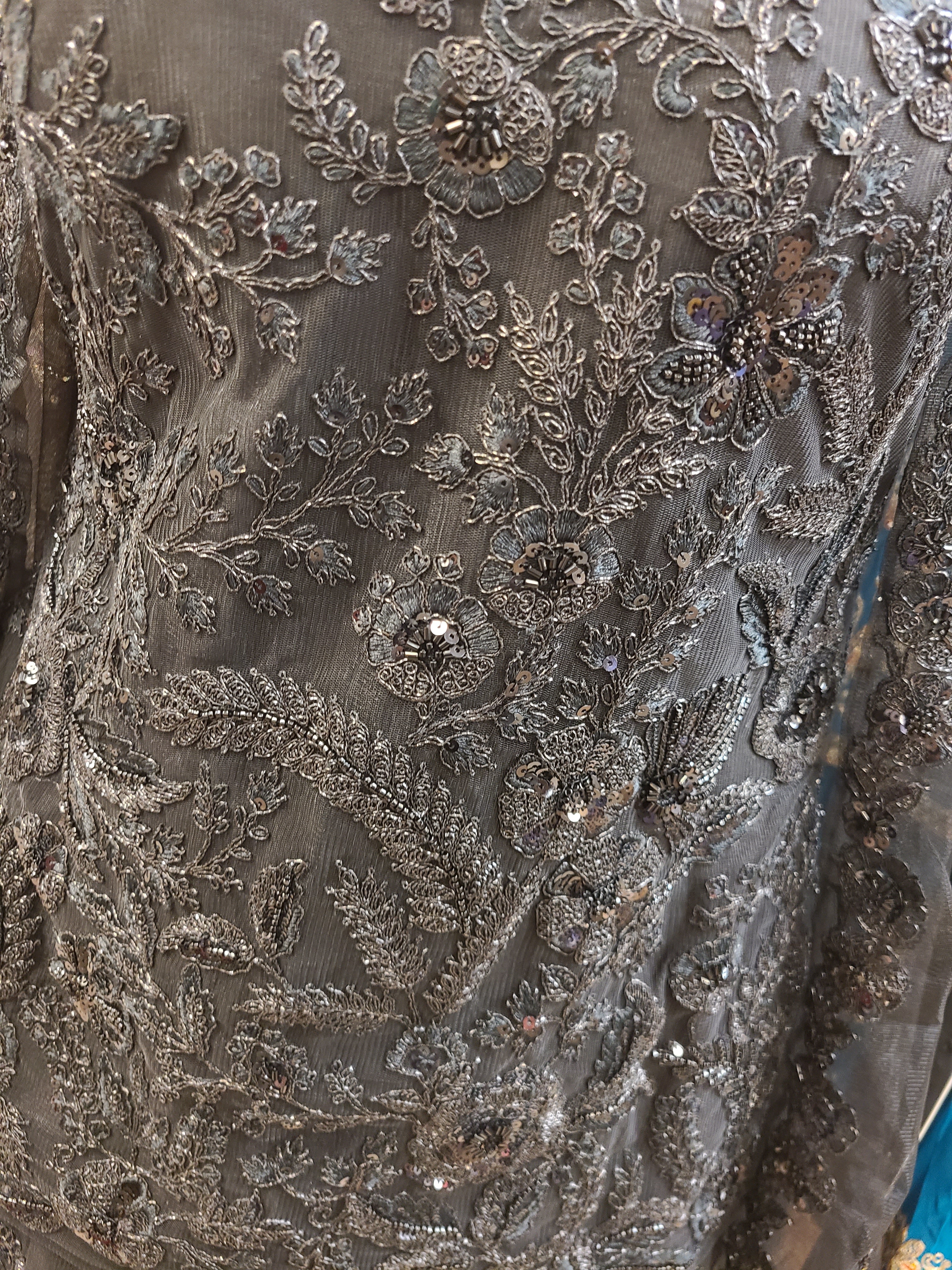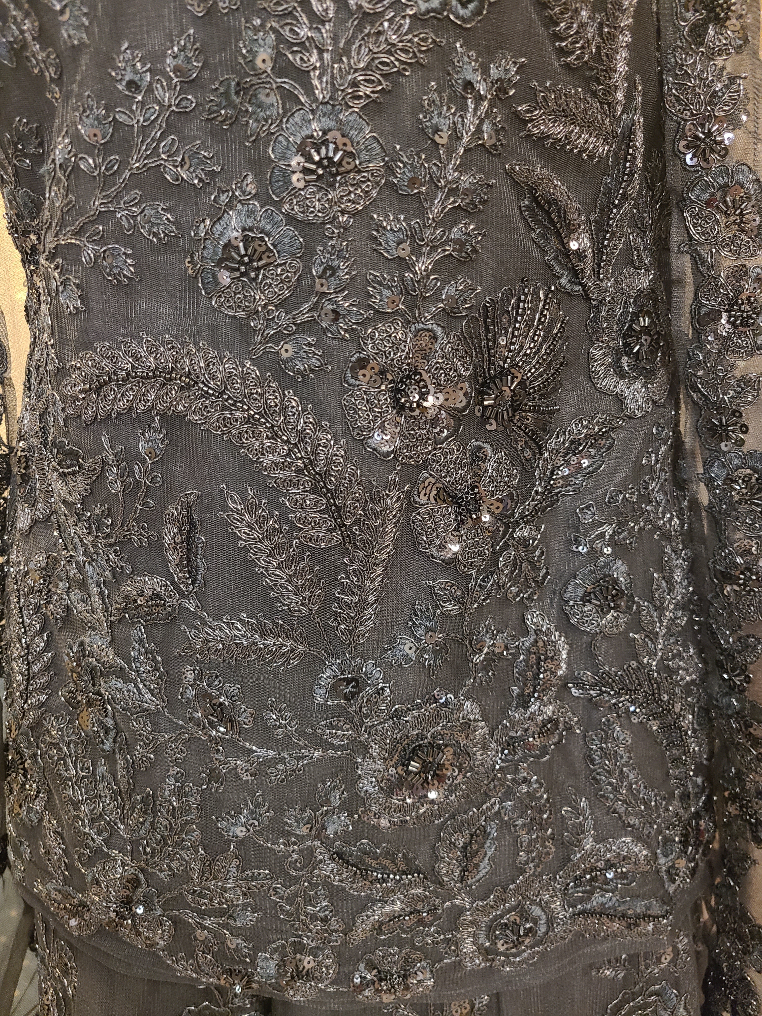 Make an unforgettable entrance at your next celebration with this exquisite embroidered sharara set, available in two stunning colorways. This luxurious three-piece ensemble features intricate embroidery and sophisticated detailing that captures the essence of contemporary indo-western bridal couture.