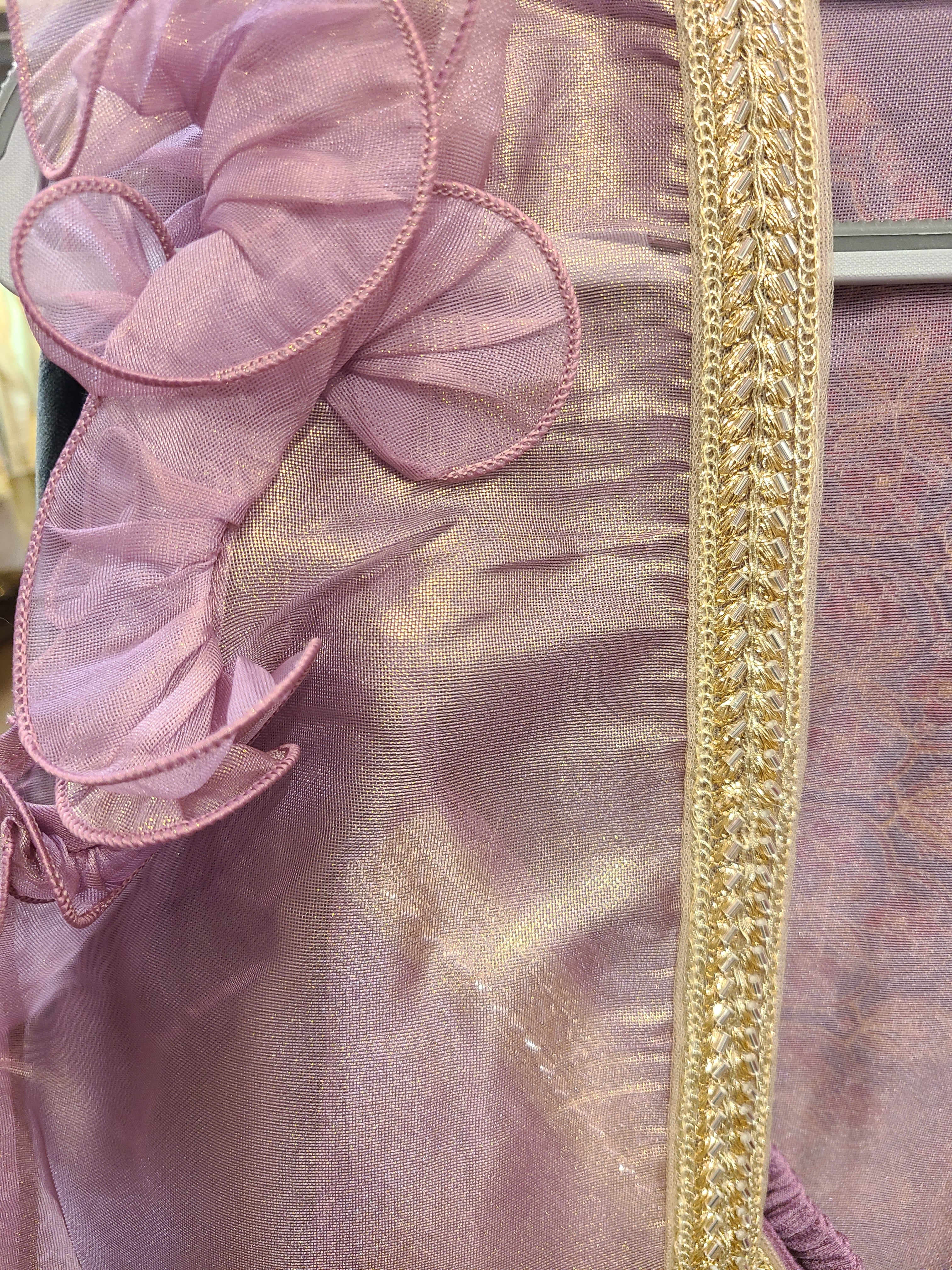 Make a statement at your next celebration with this exquisite lavender ombré sharara set. This three-piece ensemble features a beautifully embroidered blouse with romantic cape sleeves, flowing palazzo-style sharara pants, and an elegant dupatta with delicate border detailing.