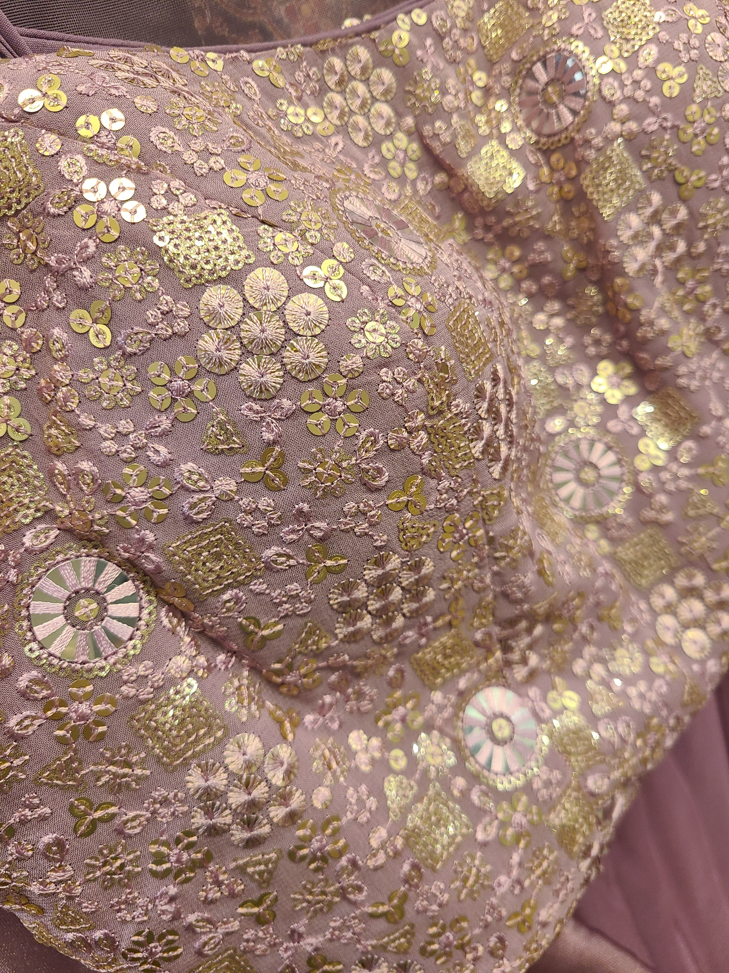 - Luxuriously pleated sharara pants in soft lavender georgette with subtle ombré effect