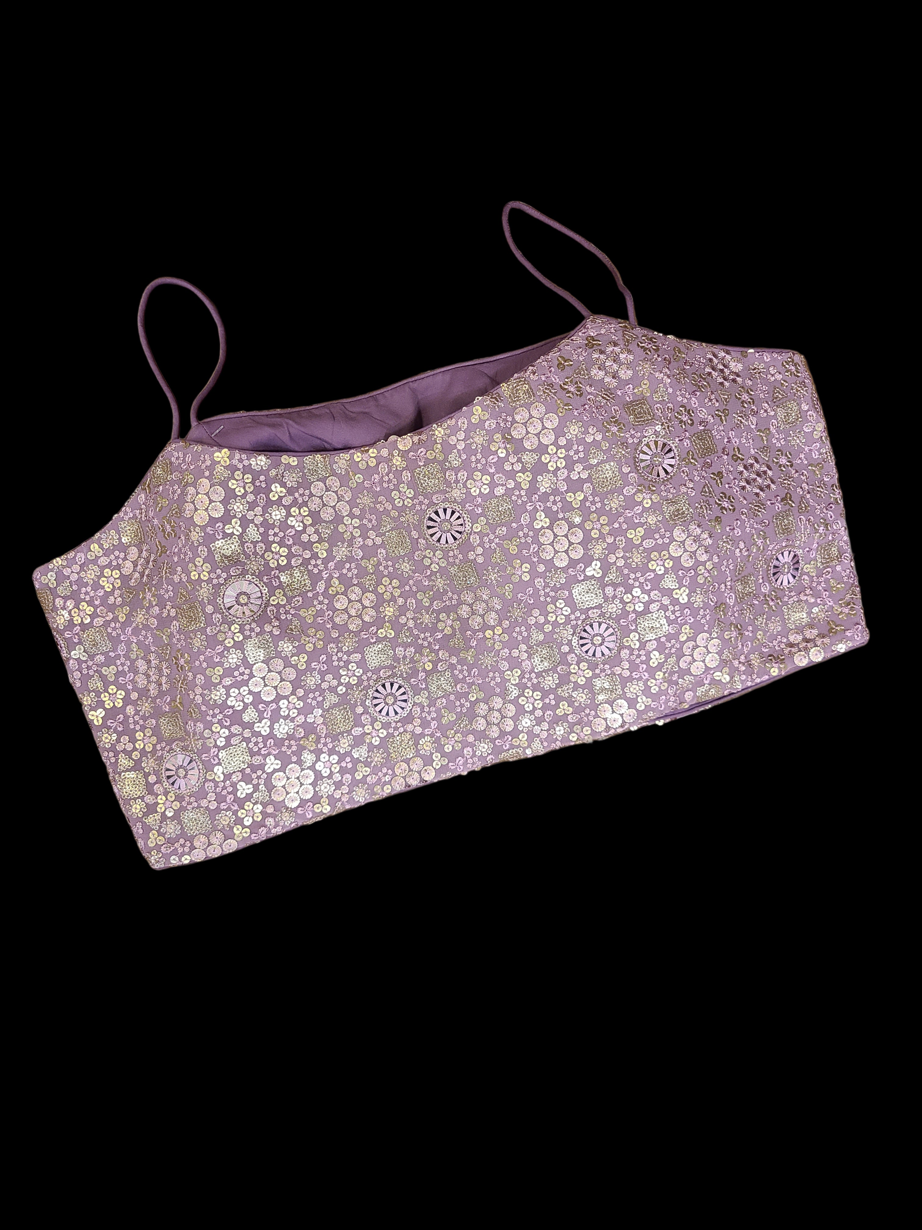- Intricately embroidered blouse with shimmering silver threadwork and sequin embellishments