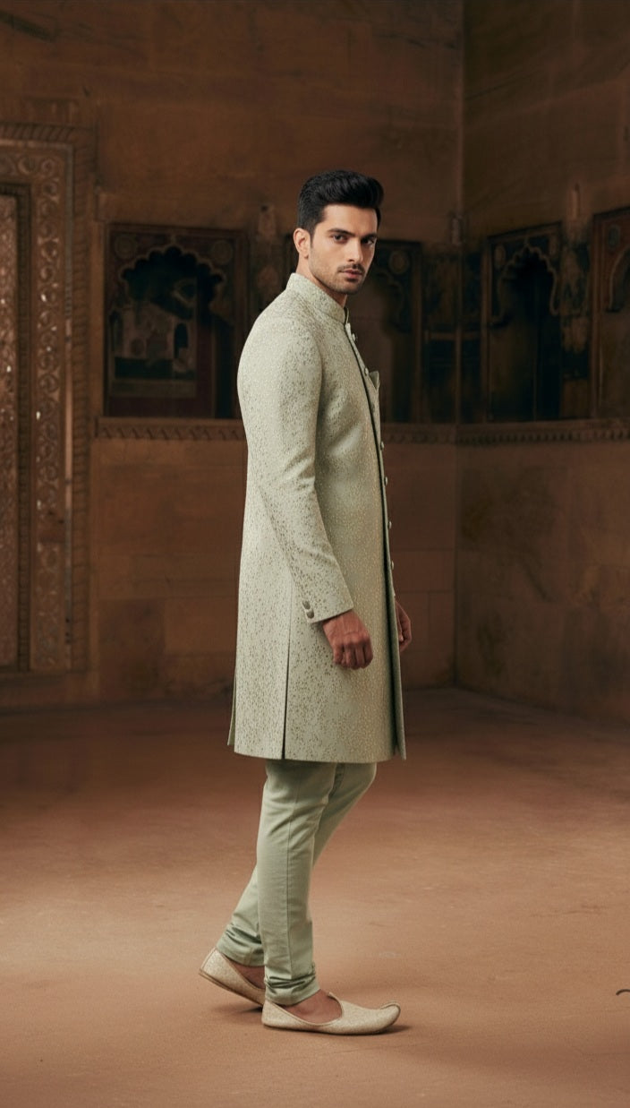 Exquisite Sage Green Sherwani - Where Tradition Meets Luxury