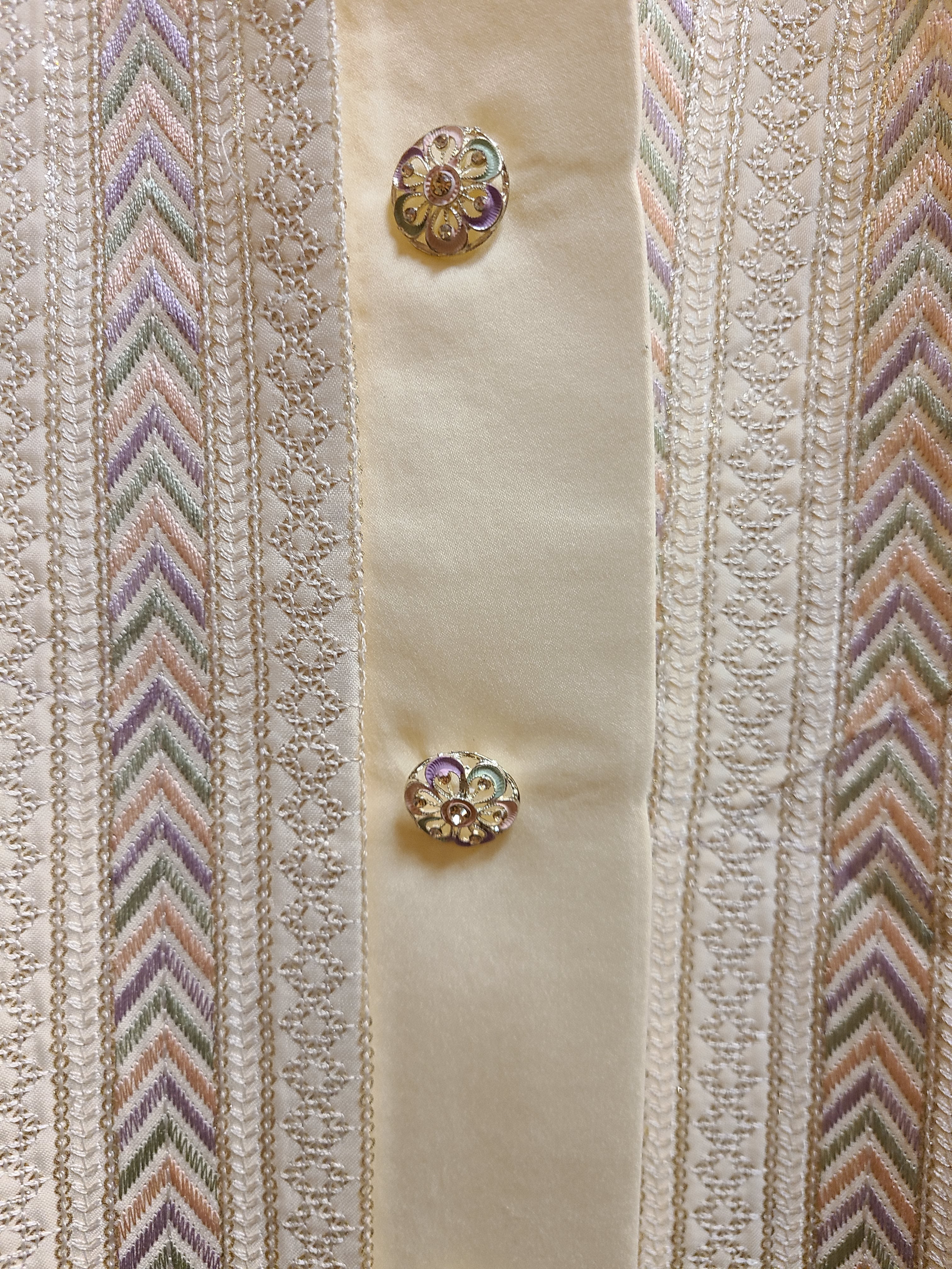 Whether you're attending a wedding ceremony, celebrating festivals like Diwali or Eid, or making a statement at formal events, this sherwani ensures you look distinguished and elegant. The timeless cream color with golden accents makes it suitable for both daytime and evening celebrations.