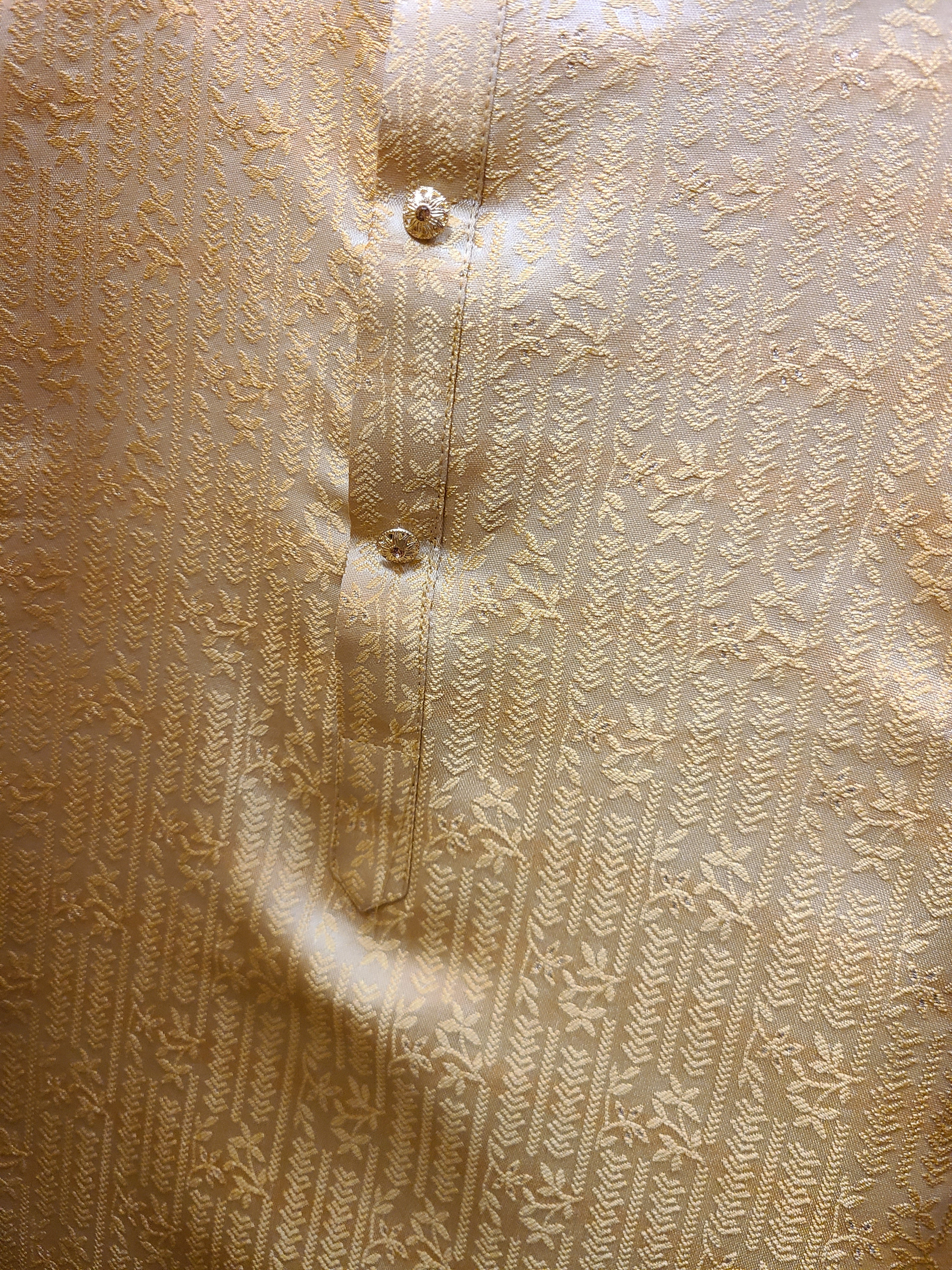 Step into sophistication with this stunning golden yellow kurta that embodies timeless Indian craftsmanship. Perfect for the discerning gentleman who values tradition with a contemporary touch, this piece features delicate embroidered detailing that adds subtle luxury to your ensemble.