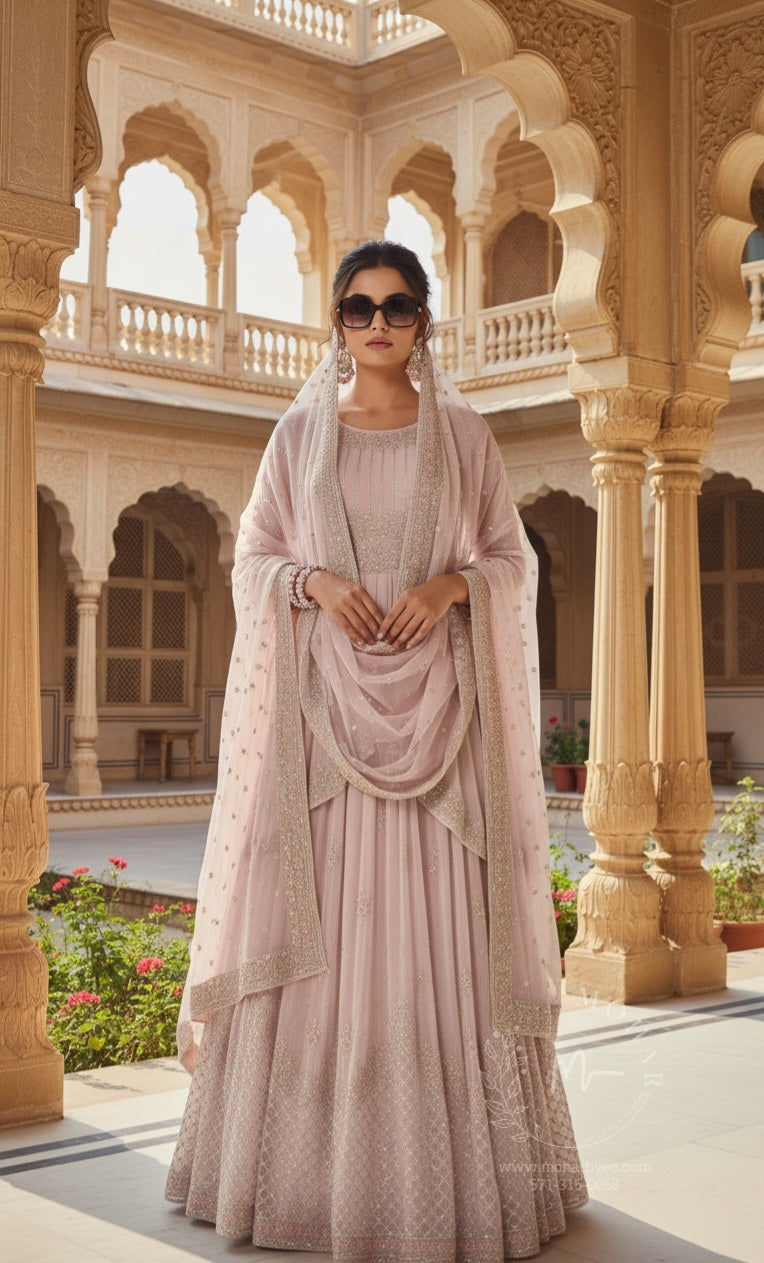 Imagine yourself twirling in this ethereal pink creation, the delicate embroidery shimmering under the lights, as you create unforgettable memories. This isn't just a lehenga—it's a statement of grace, elegance, and timeless beauty.