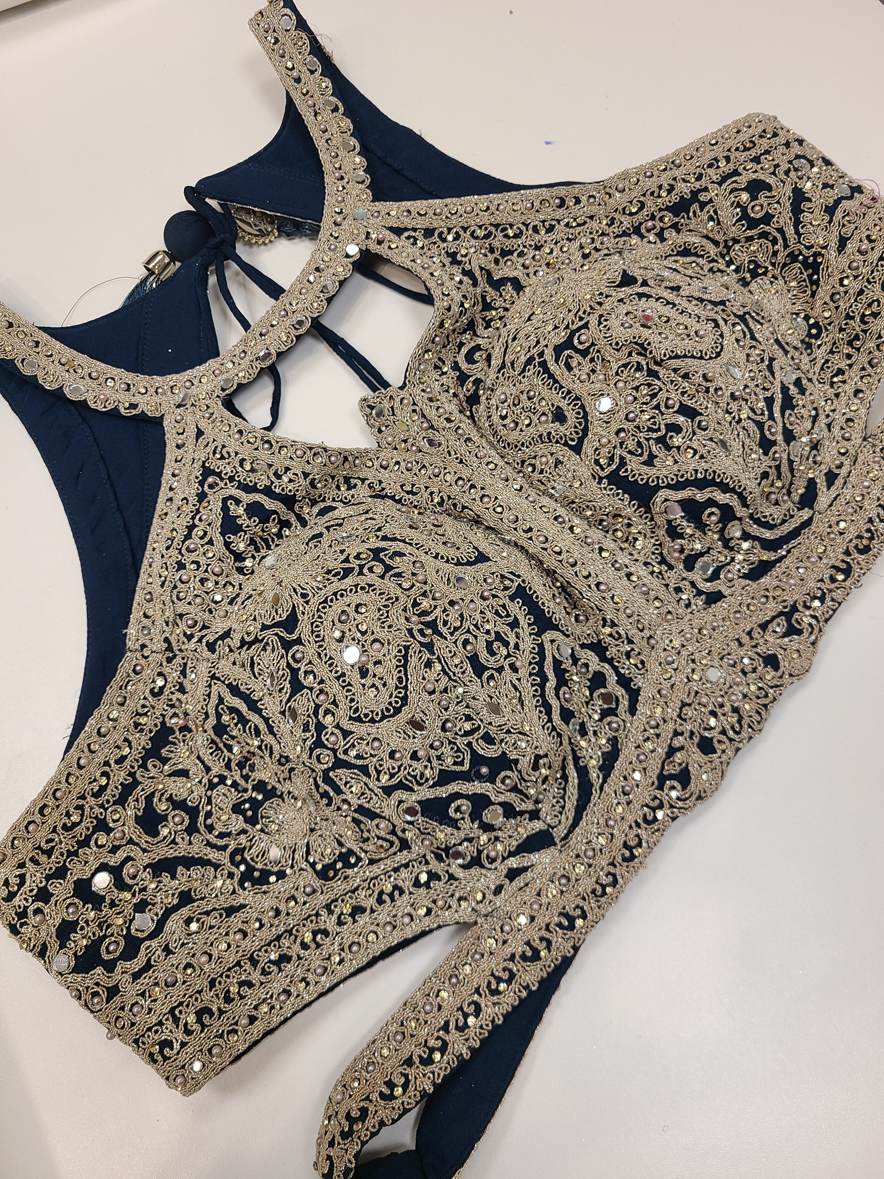 - Statement Blouse: Heavily embellished crop top with elegant neckline and perfect fit