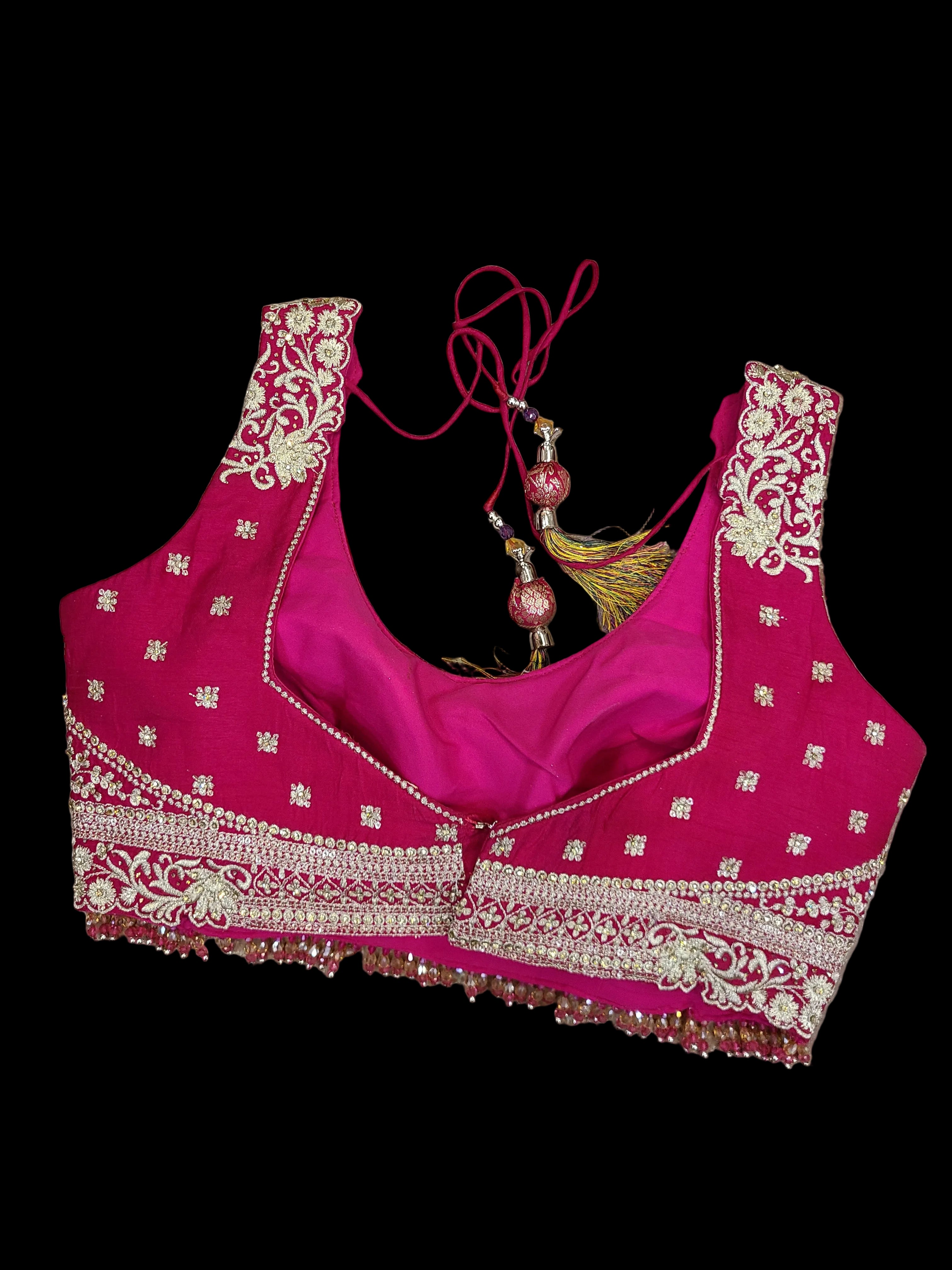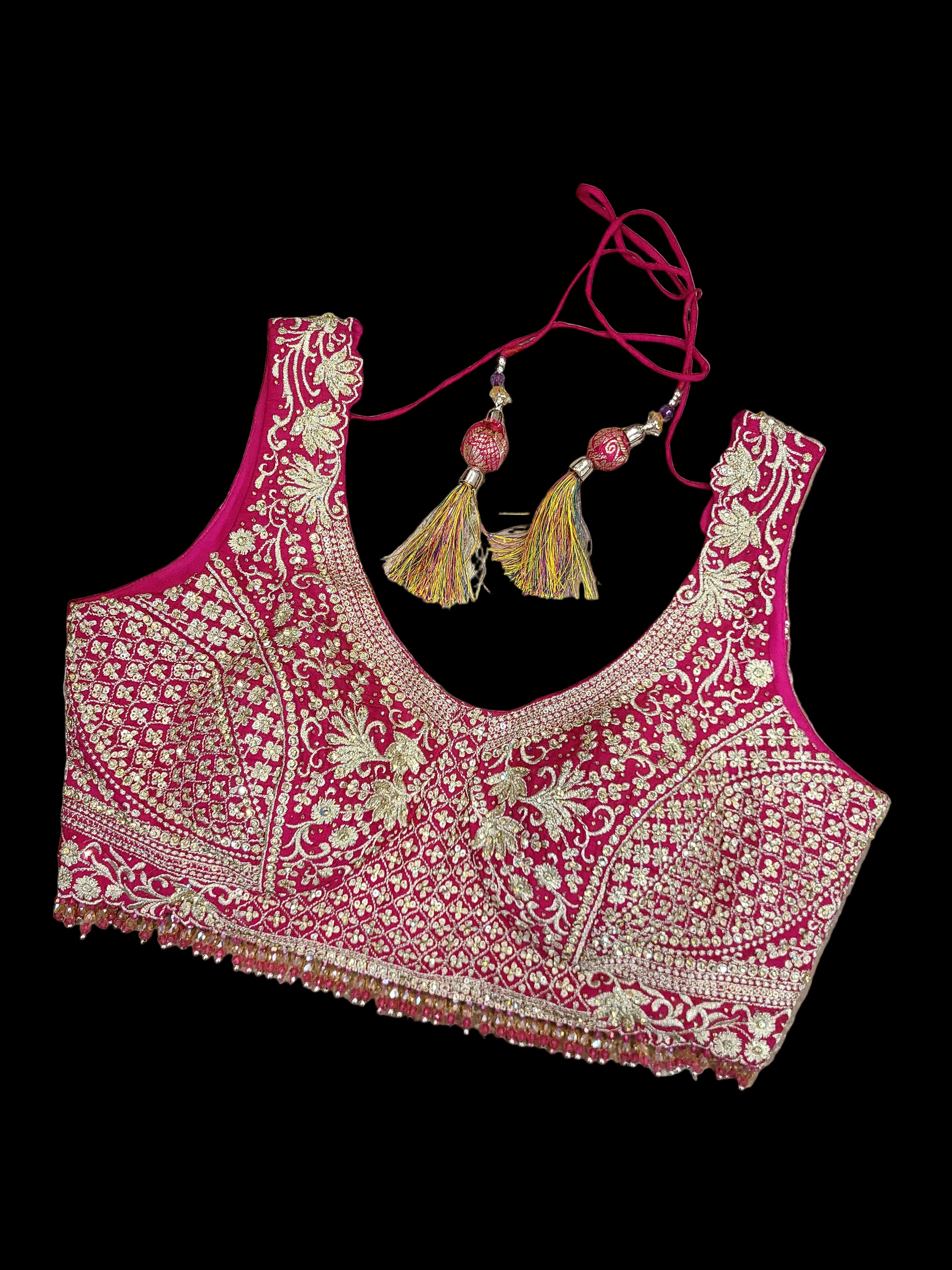 - Embellished Choli: Beautifully crafted crop top with mirror work and intricate embroidery