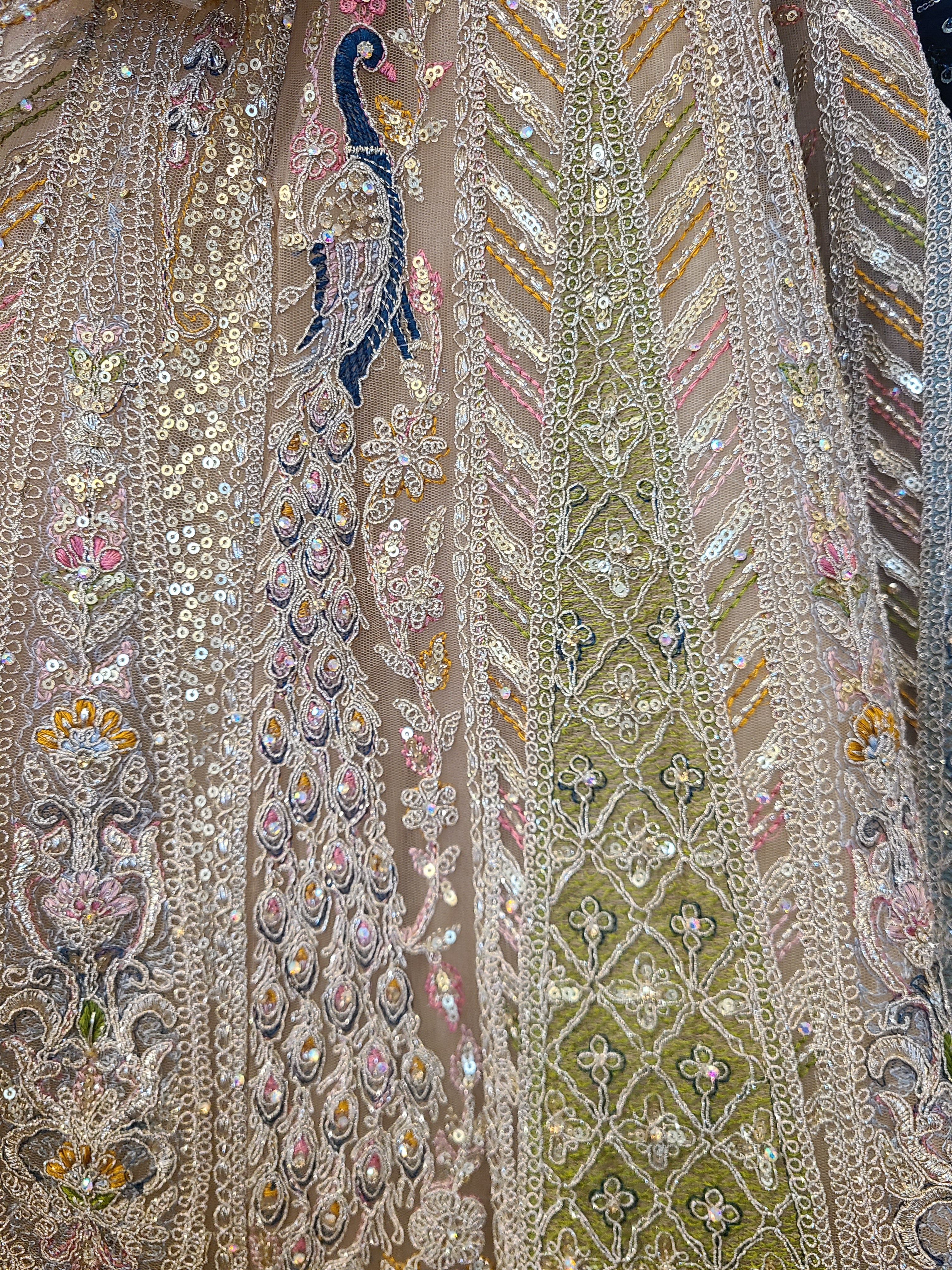 Champagne Peacock Net Lehenga - Luxe Bridal Collection