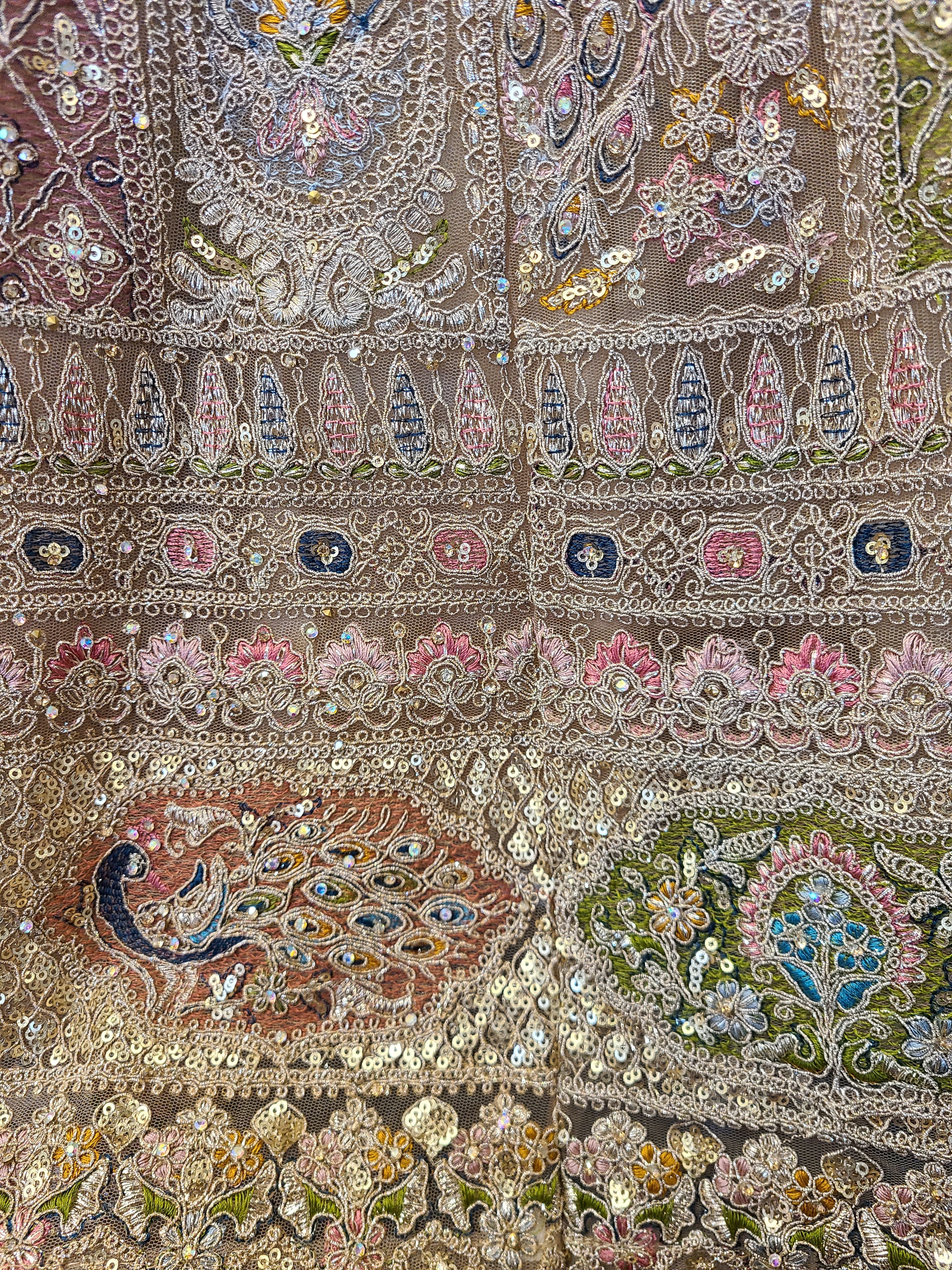 Dry clean only to preserve the intricate embroidery and fabric quality. Store in a breathable garment bag away from direct sunlight.