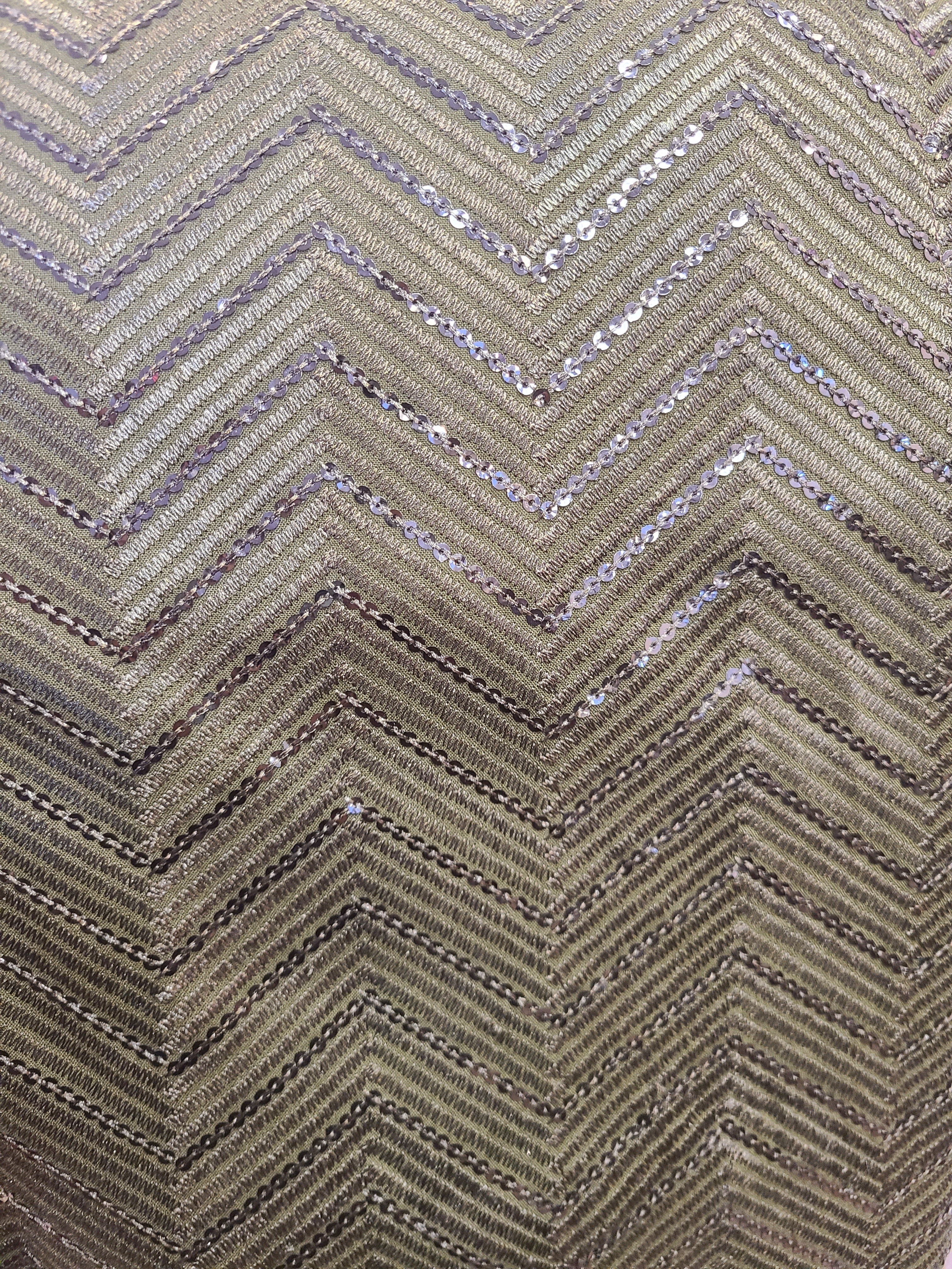 The rich olive green hue is a refreshing departure from traditional colors, offering a modern, sophisticated aesthetic that's perfect for contemporary celebrations. This earthy tone symbolizes growth, harmony, and prosperity, making it ideal for auspicious occasions. The all-over chevron embroidery creates a mesmerizing geometric pattern that adds dimension and visual interest, while the subtle embellishment ensures you stand out with understated elegance. This versatile shade complements all skin tones and photographs beautifully in both natural and artificial light.