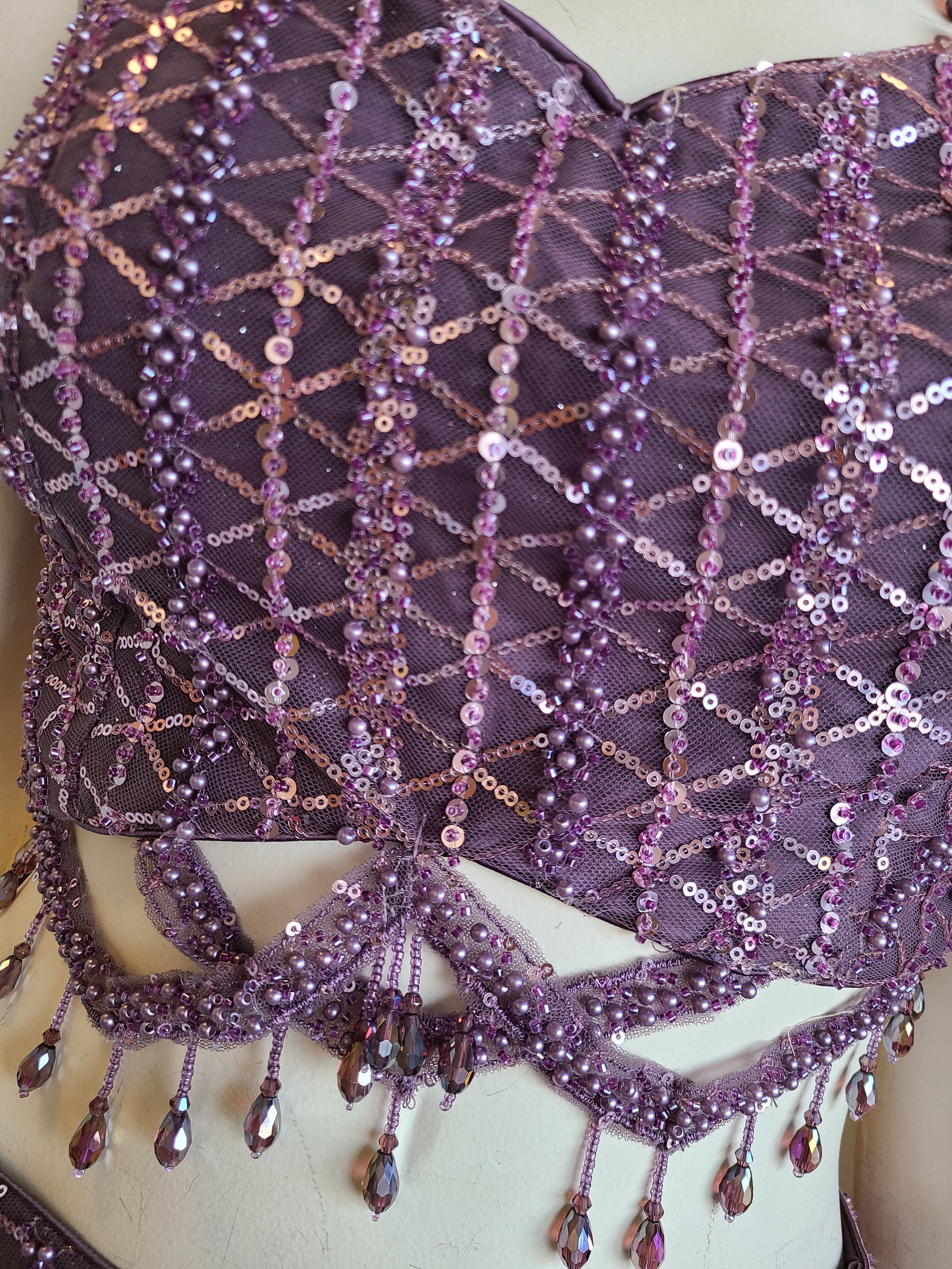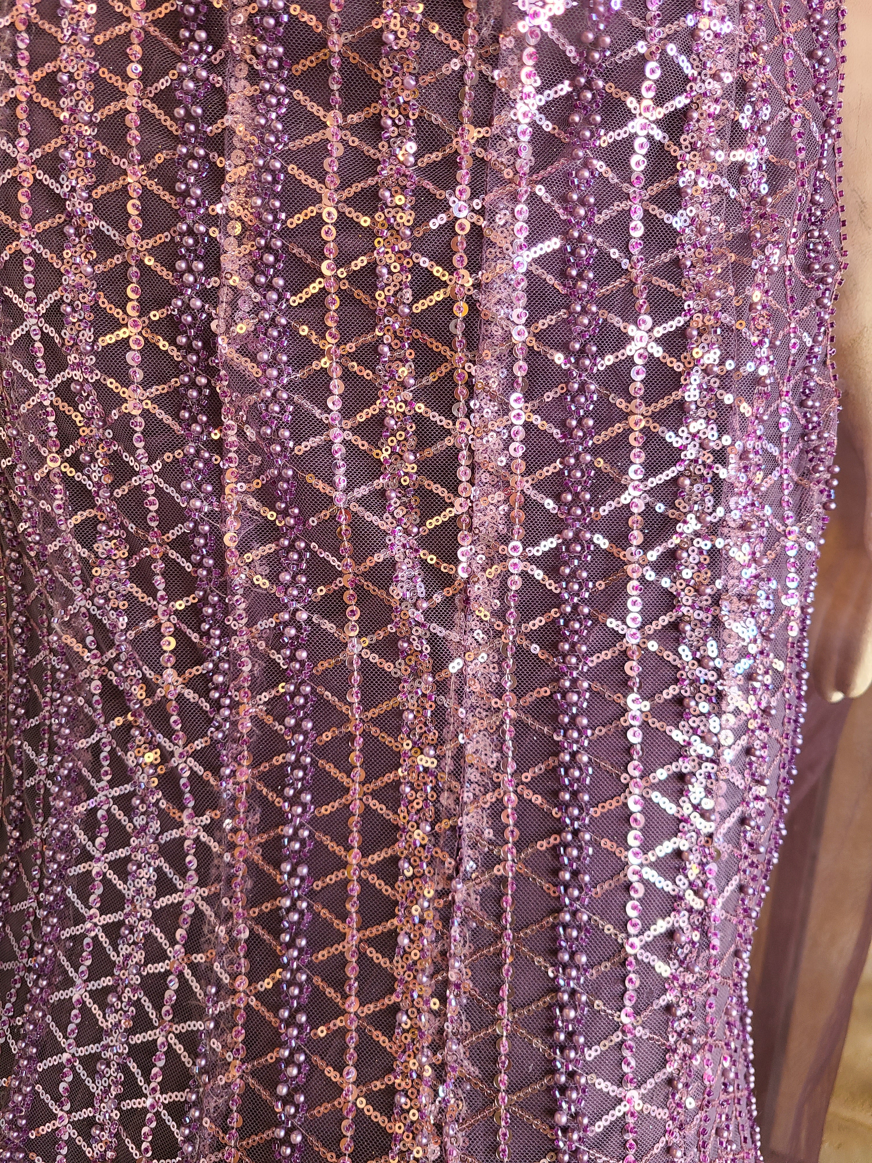 Rose Pink Sequined Mermaid Lehenga Set with Asymmetric Drape
