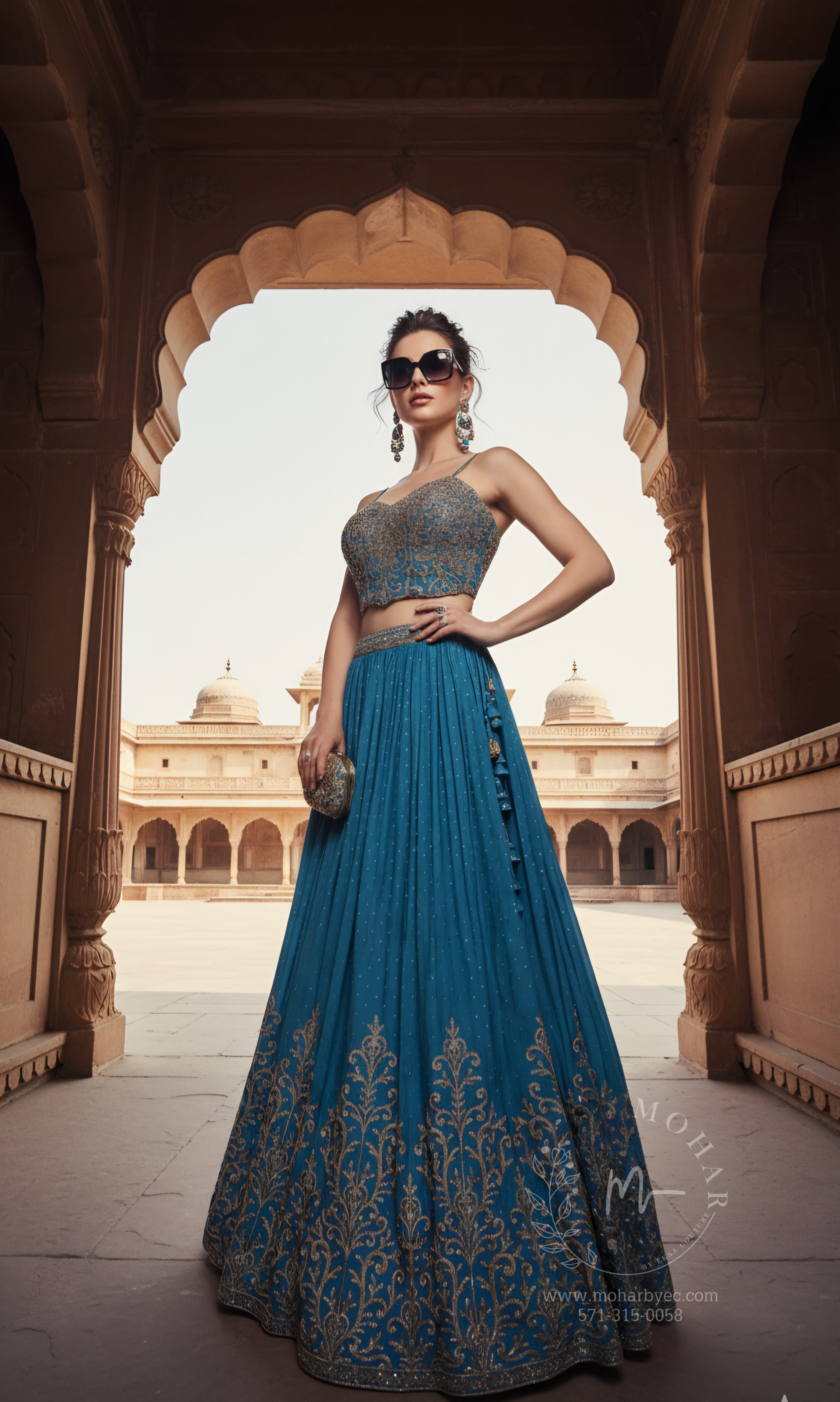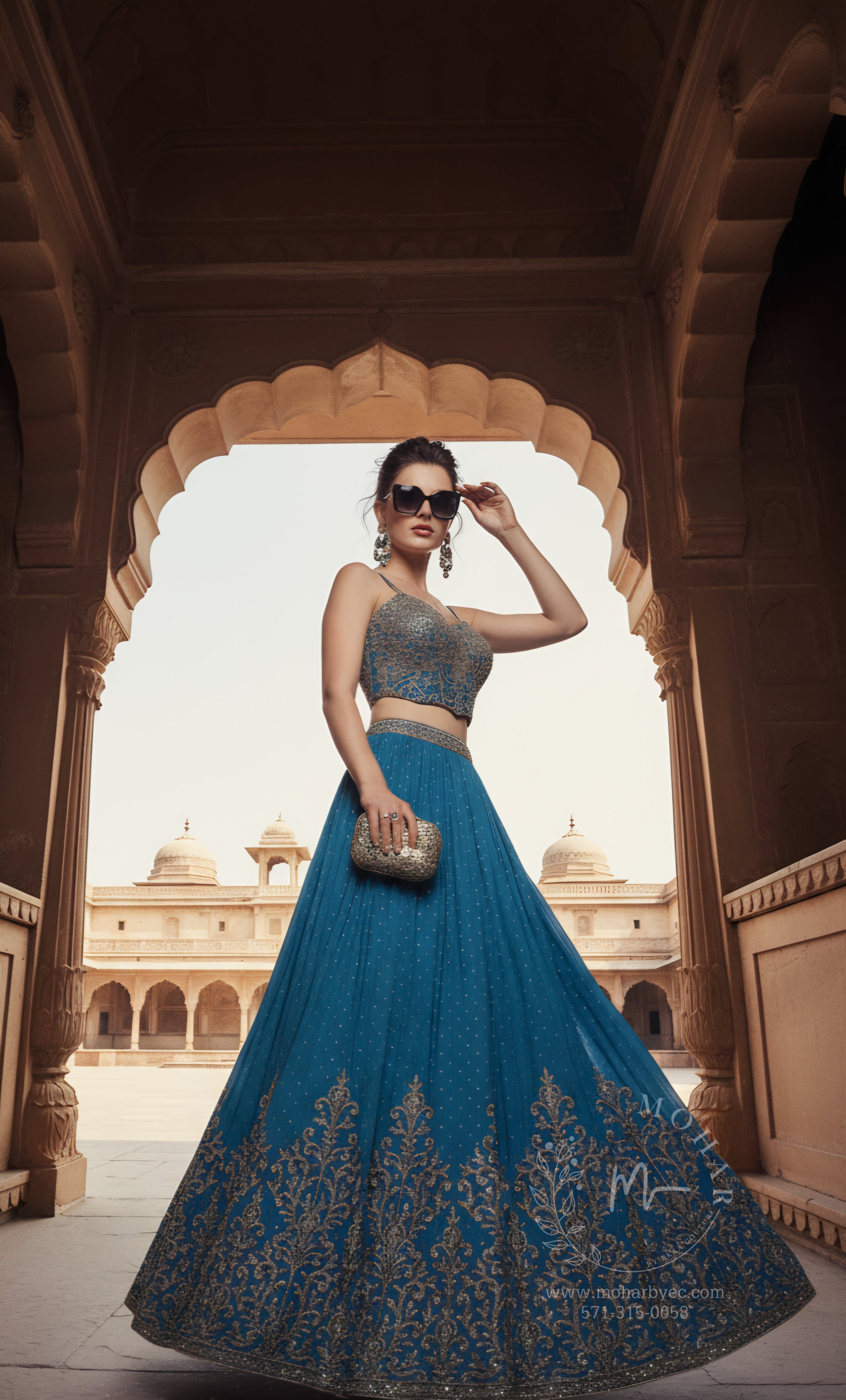 Transport yourself to the grandeur of royal palaces with this magnificent teal blue lehenga choli. Inspired by regal Indian heritage, this ensemble combines timeless elegance with contemporary sophistication, making you feel like royalty at every celebration.