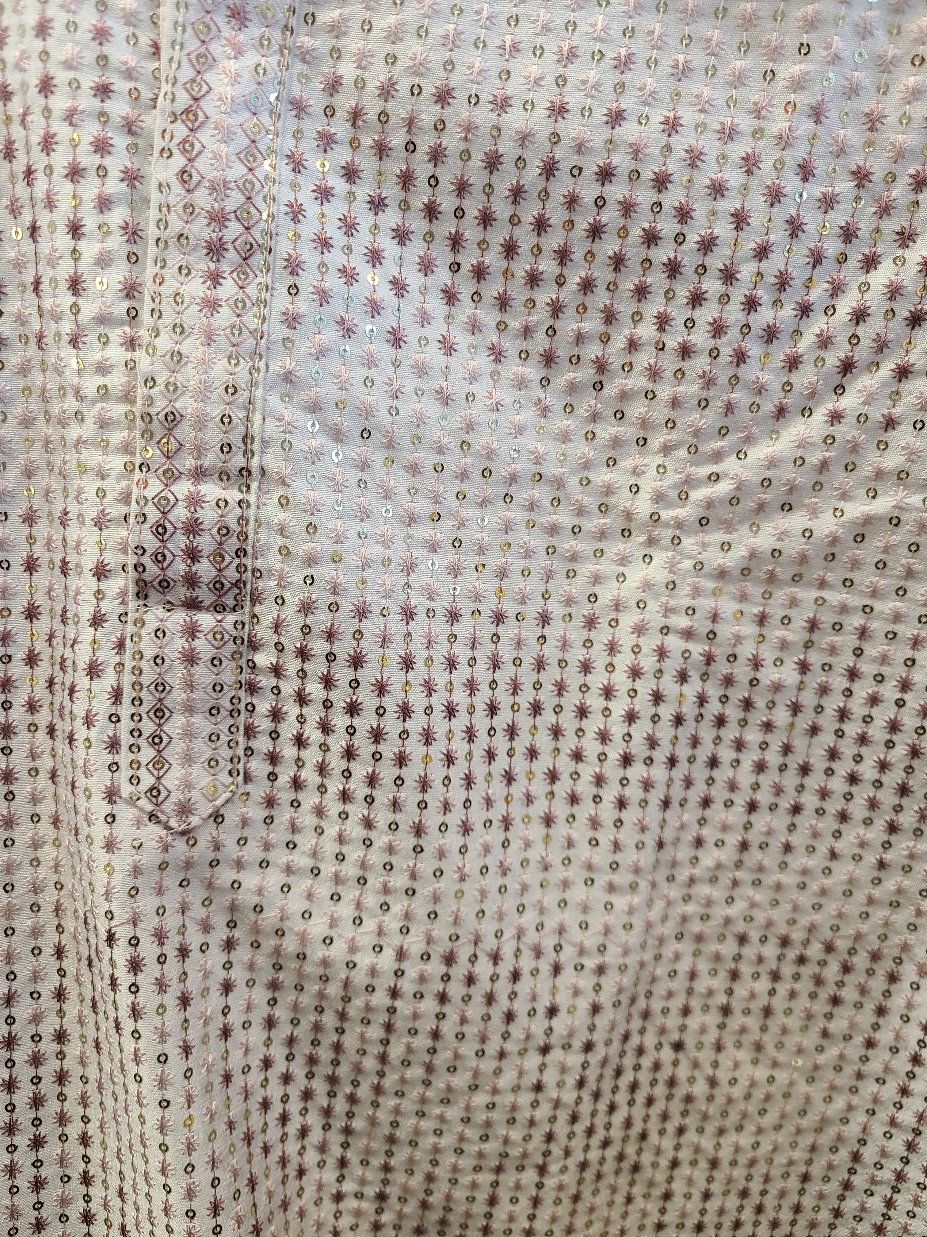 - All-Over Textured Embroidery: Delicate self-toned embroidery in a geometric pattern covers the entire kurta, creating subtle texture and visual interest without being overly embellished