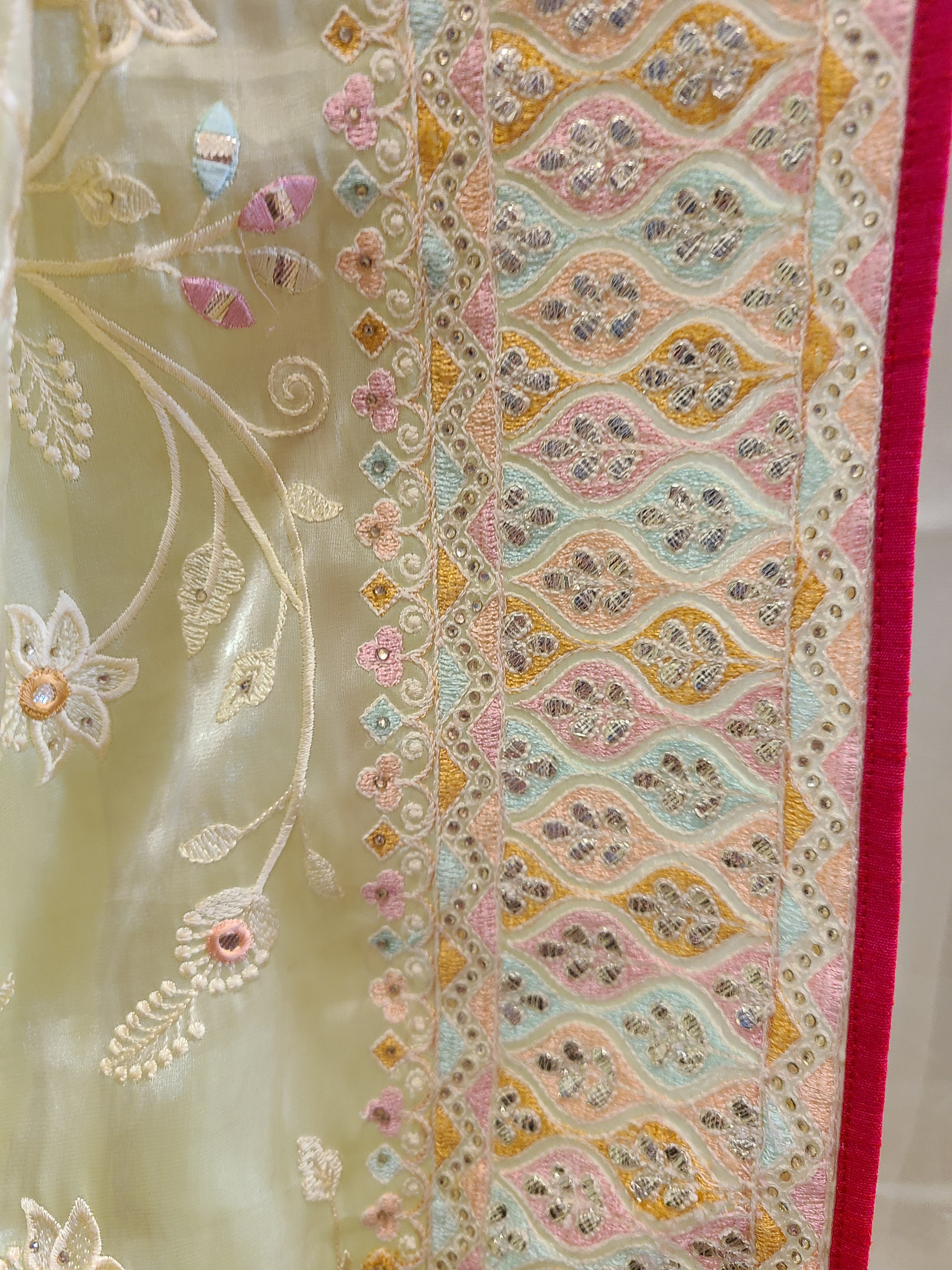 - Premium Organza/Net Fabric: Lightweight, semi-sheer fabric with an elegant drape and luxurious feel