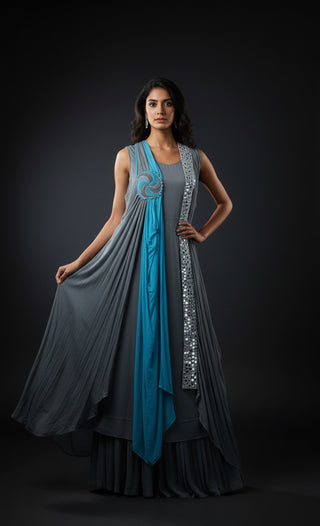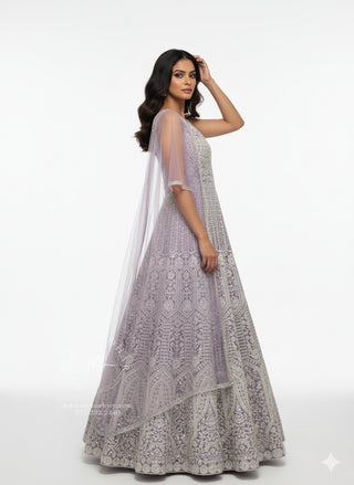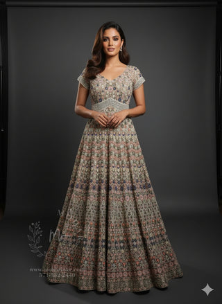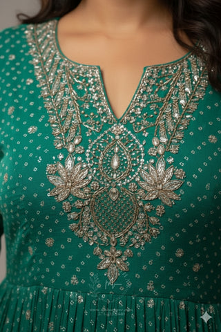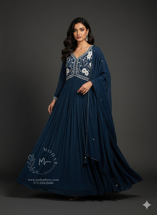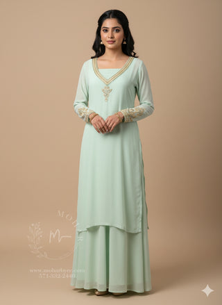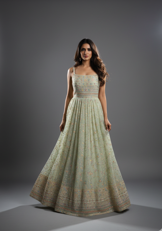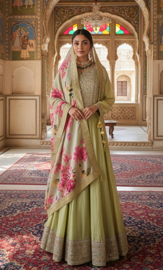 Elegant Sage Green Floral Embroidered Anarkali Set