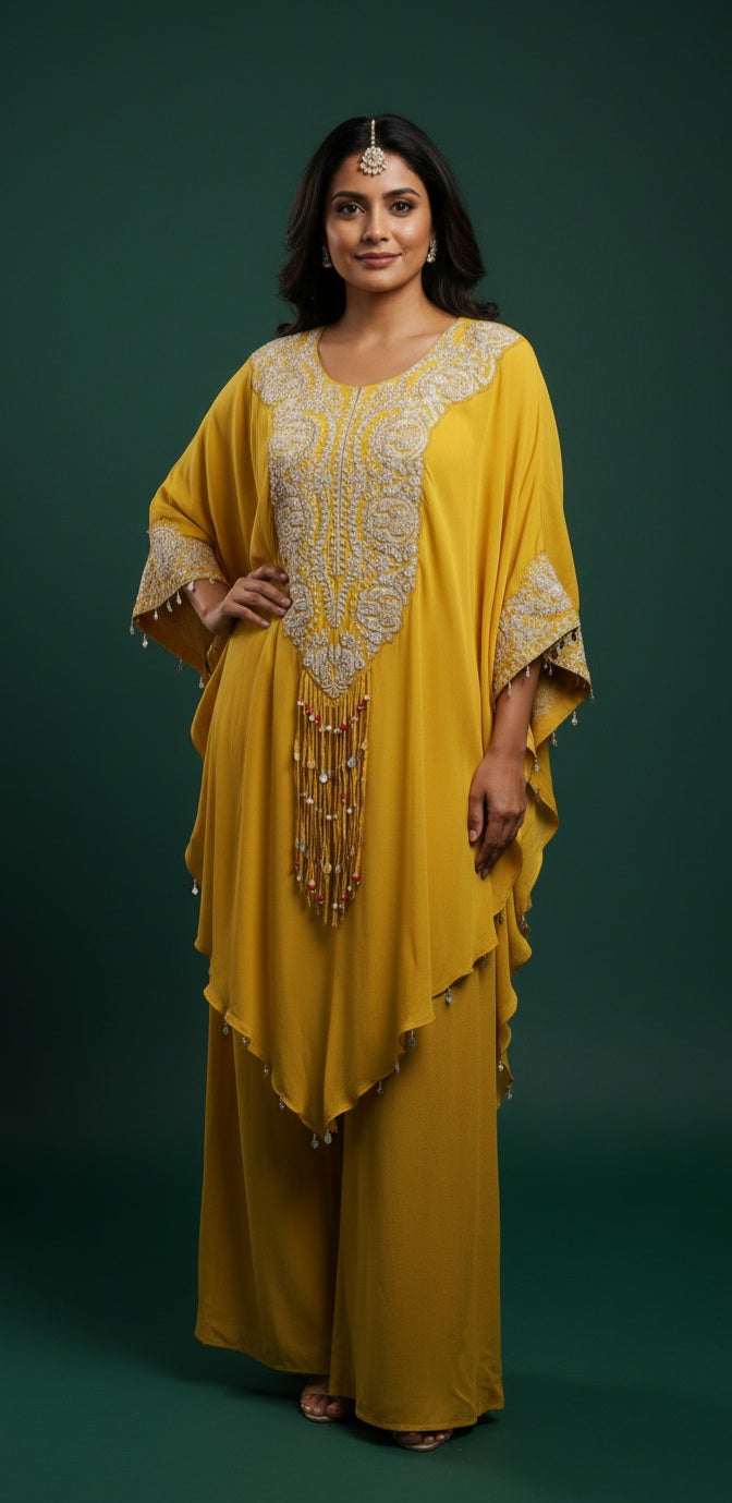 Mustard Yellow Embroidered Kaftan with Palazzo Set