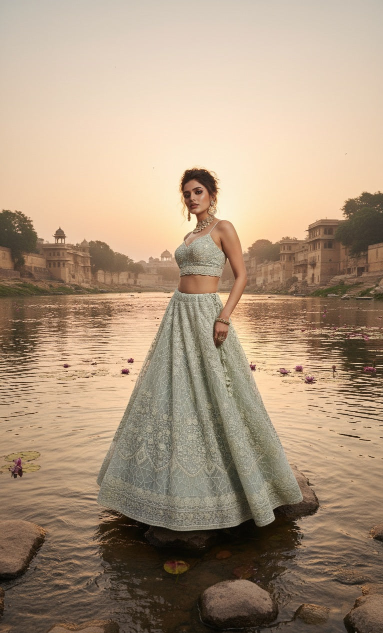 Majestic Sage Green Embroidered Lehenga - Timeless Sophistication